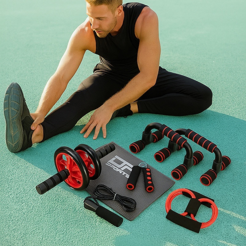 Спортивный набор 6 в 1: ролик, упоры, скакалка, эспандер, резинка, коврик