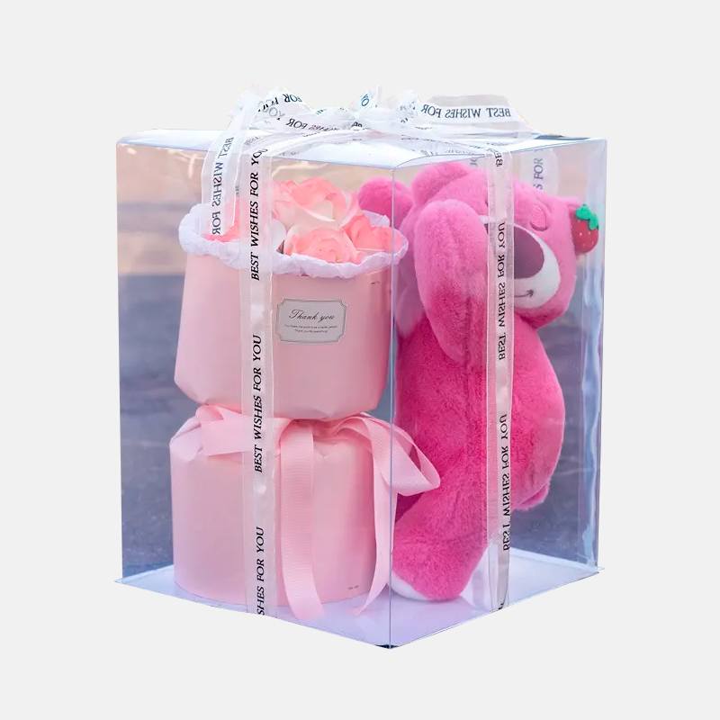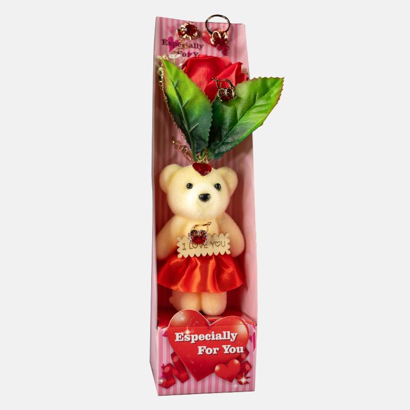 Подарочный набор ароматного мыла в виде розы с Мишкой + Булатный набор с фианитами 4 в 1