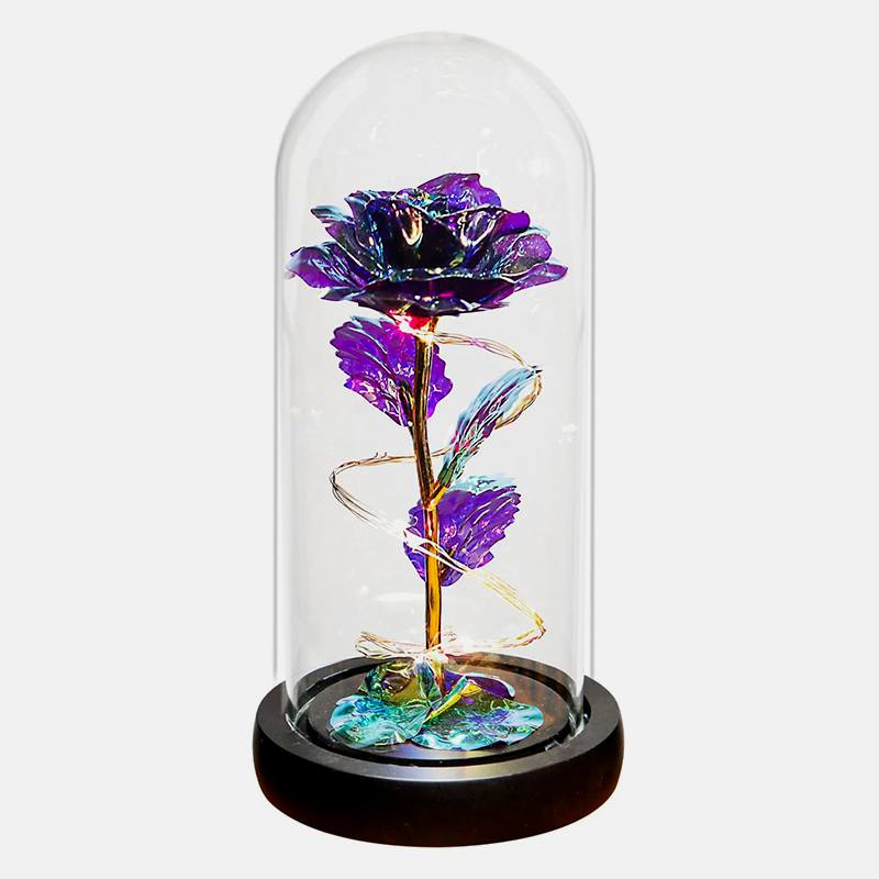 Галактическая роза в стеклянной колбе с LED + Подарочный набор Best Wishes 4 в 1 в коробке-сердце