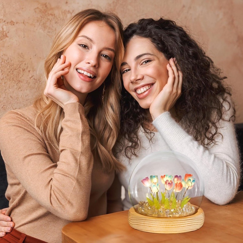 Настольный ночник тюльпаны в стеклянной колбе с LED подсветкой