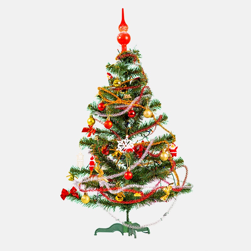 Новогодняя искусственная елка с набором украшений, светодиодной гирляндой и верхушкой