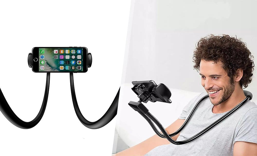 Универсальная липучка-держатель отлично удерживает смартфон, навигатор или мини-планшет на любой поверхности; особенно удобен в автомобиле. Гибкий держатель для телефона можно использовать как подставку на столе, палку для селфи во время прогулки или расположить на шее или на талии, если нужно освободить руки.