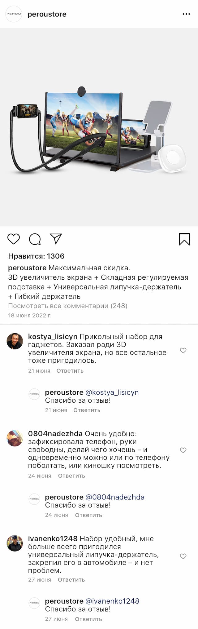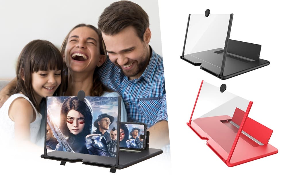 3D увеличитель экрана телефона усиливает изображение в несколько раз, значительно снижая утомляемость глаз; картинка остается яркой и четкой, не теряет качества, становится более реалистичной. Складная регулируемая подставка для телефона надежно фиксирует устройство на столе под нужным углом наклона.