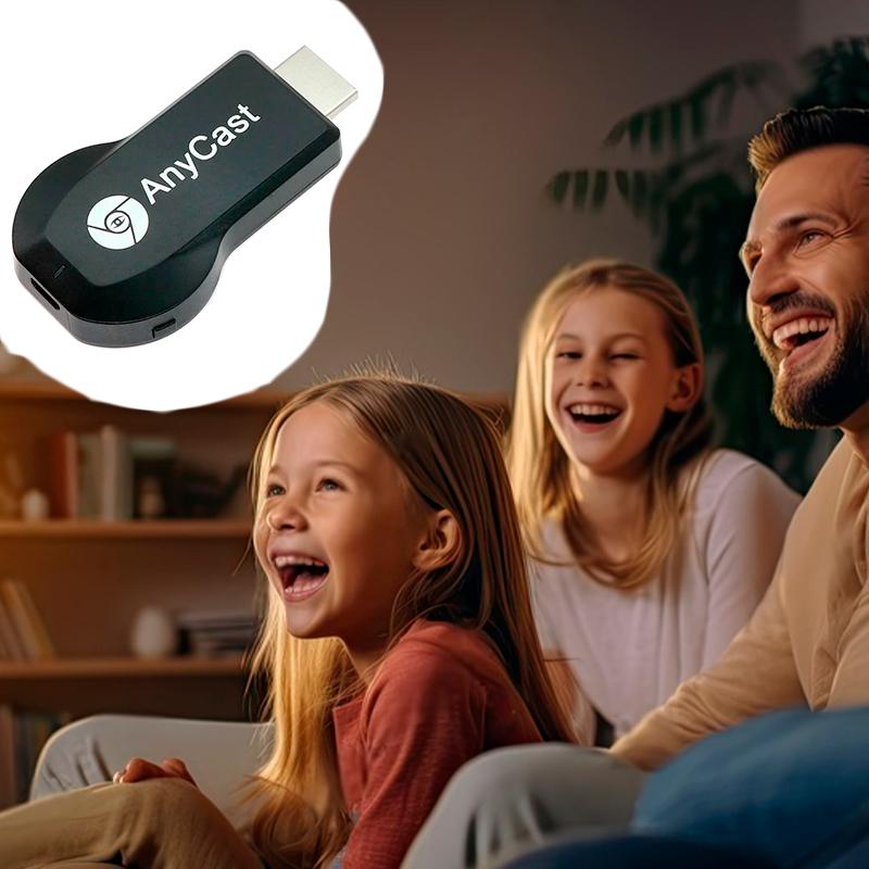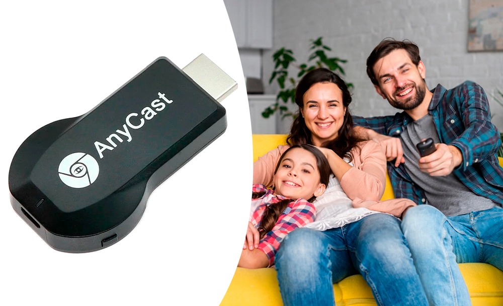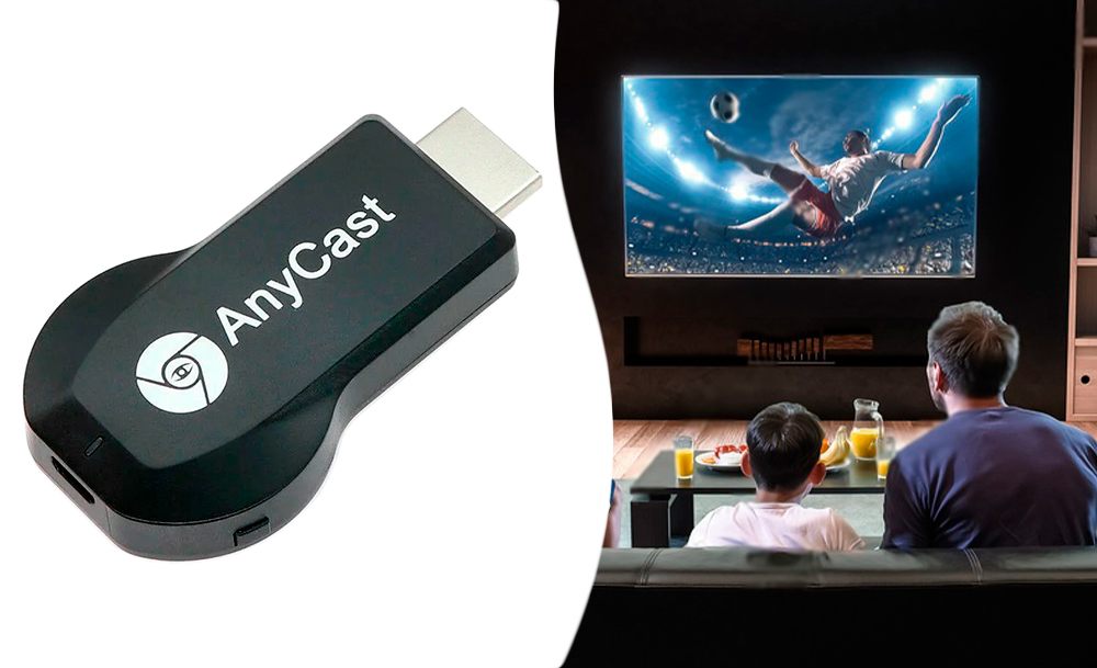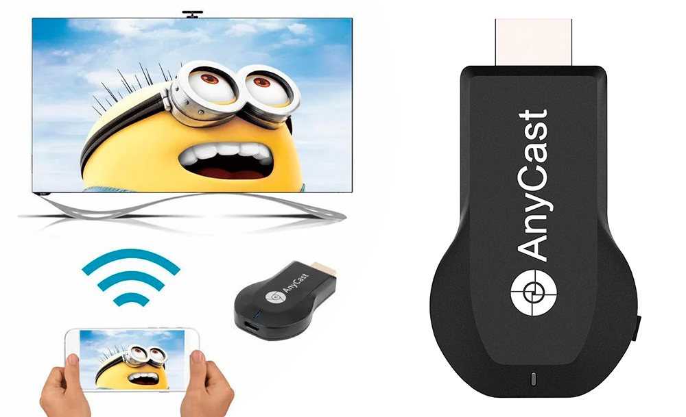 AnyCast – это обновленный адаптер для отображения экрана смартфона, планшета или компьютера на большом экране телевизора или проектора без проводов Wi-Fi. Устройство не требует наличия Wi-Fi на телевизоре, достаточно иметь разъем HDMI.