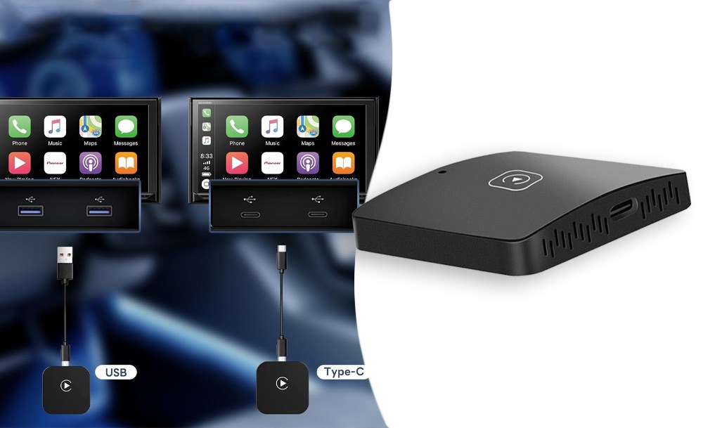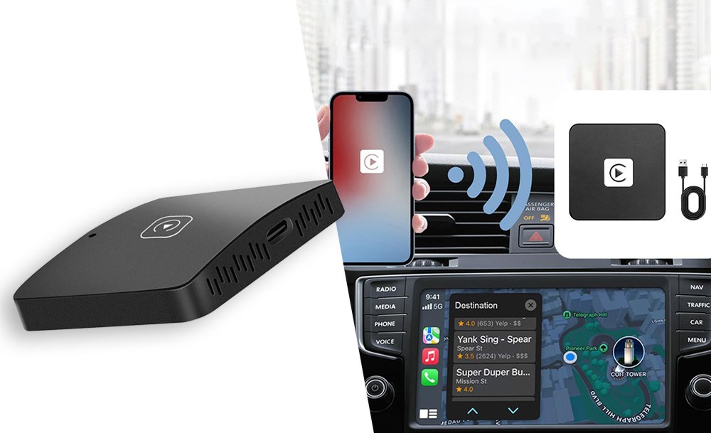 Мини-адаптер Podofo AI Box – это устройство для преобразования оригинального проводного CarPlay в беспроводной CarPlay. Установка занимает всего несколько секунд и не требует снятия штатного радио.