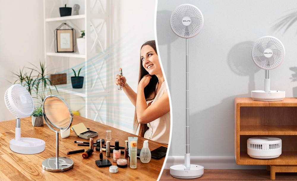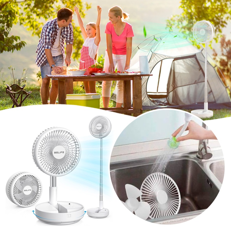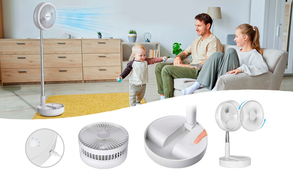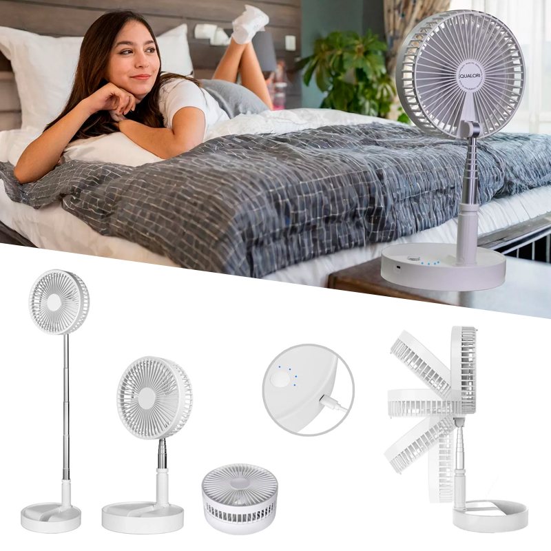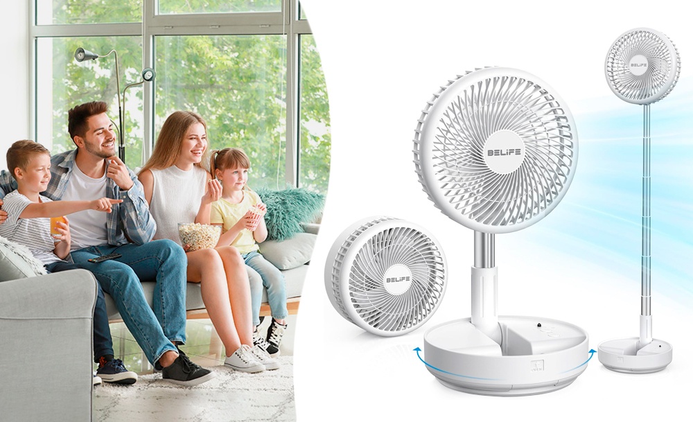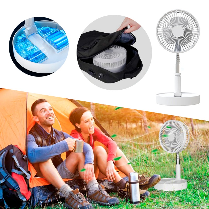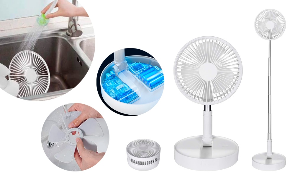 Особенностью этой модели портативного вентилятора является телескопическая конструкция, которая позволяет использовать его как в настольном так и напольном вариантах под разными углами. Мощная аккумуляторная батарея обеспечивает до 5 часов работы в зависмости от выбранного режима.
