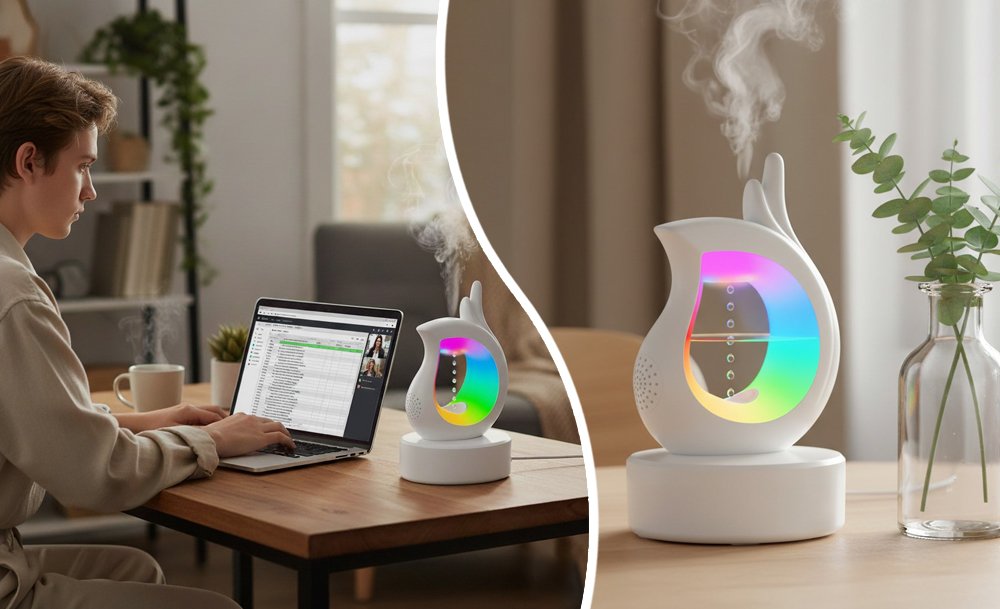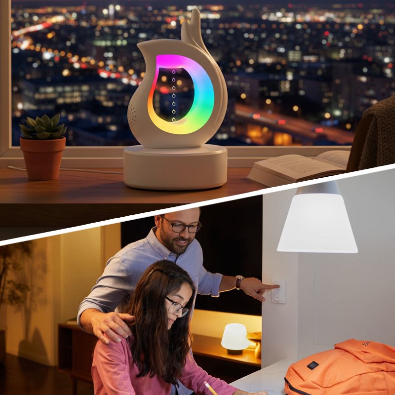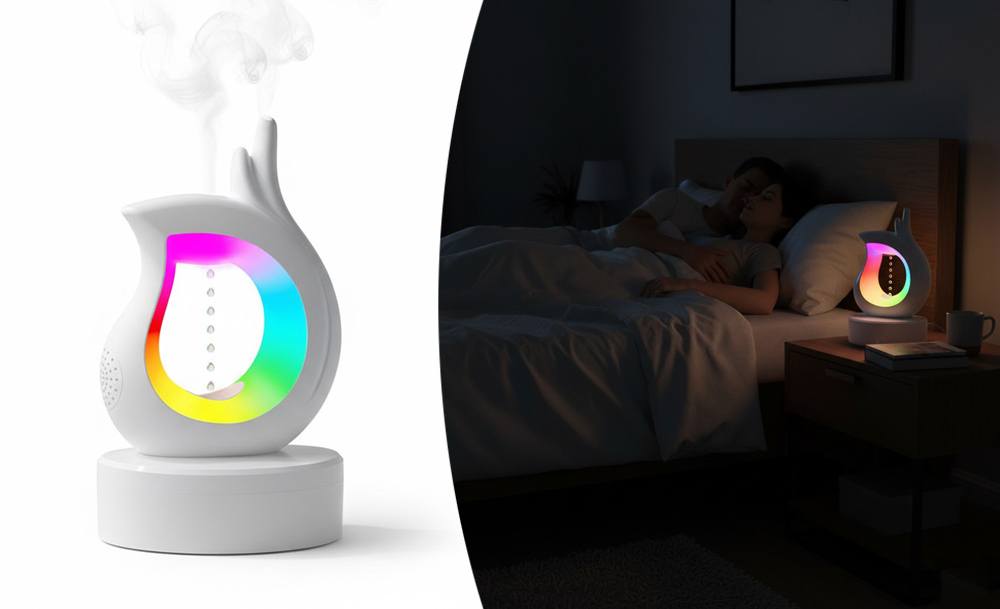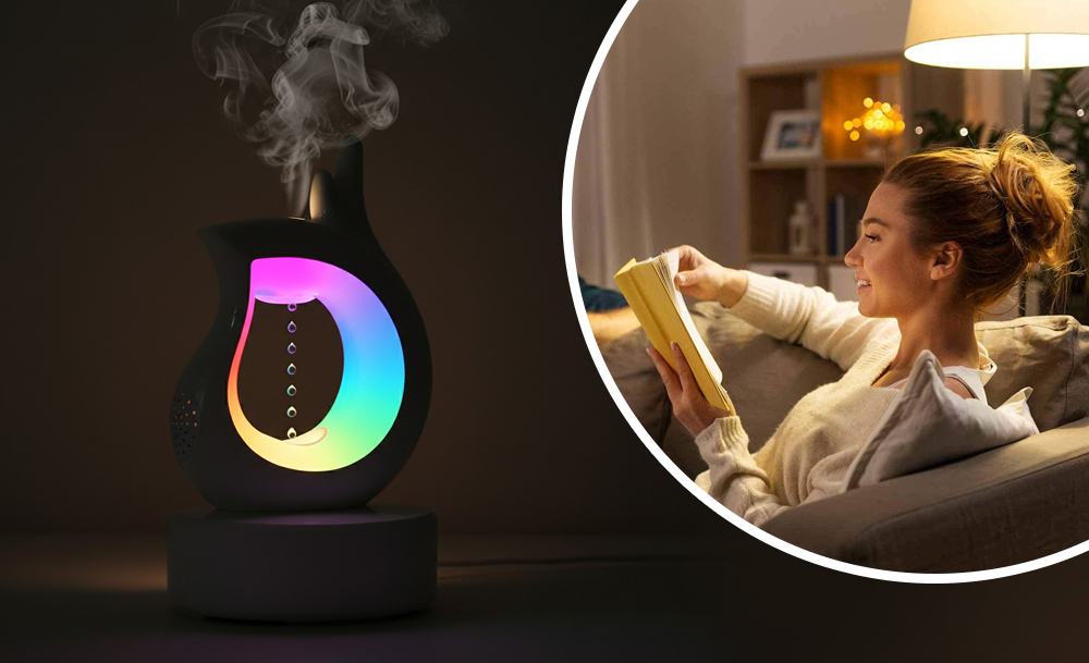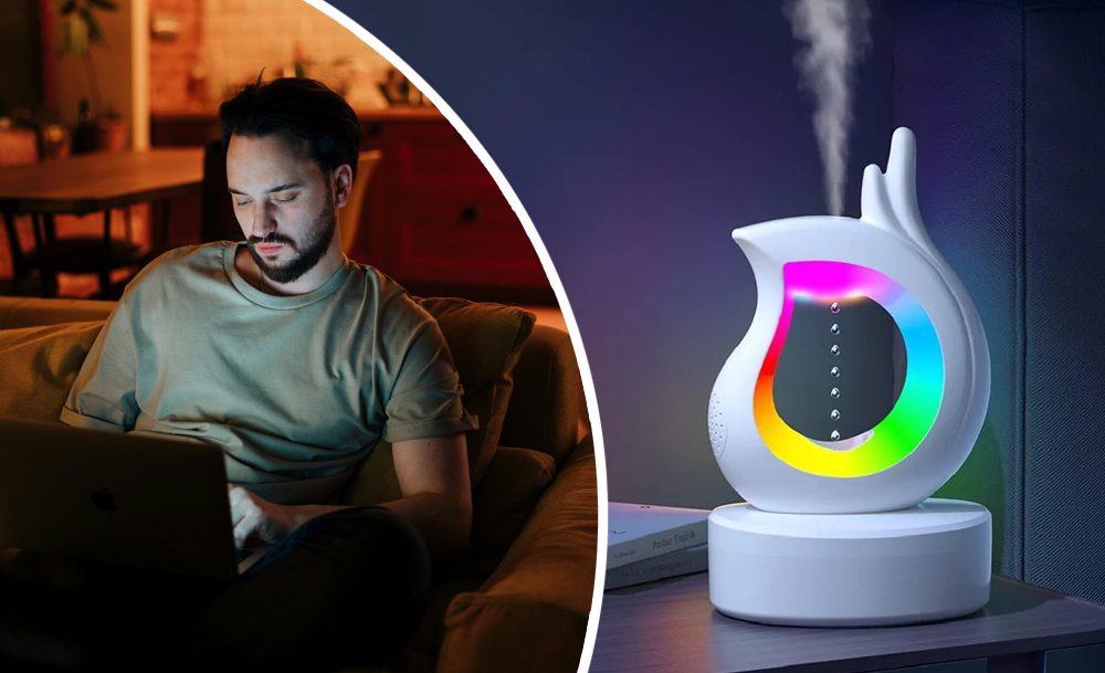 Встроенный ночной RGB предлагает мягкое освещение с возможностью изменения цвета. Дополнительная функция Bluetooth-динамик позволяет воспроизводить музыку или звуки природы со смартфона. Устройство работает тихо, потребляет мало энергии и легко наполняется водой. Идеально подходит для спальни, детской или офиса.