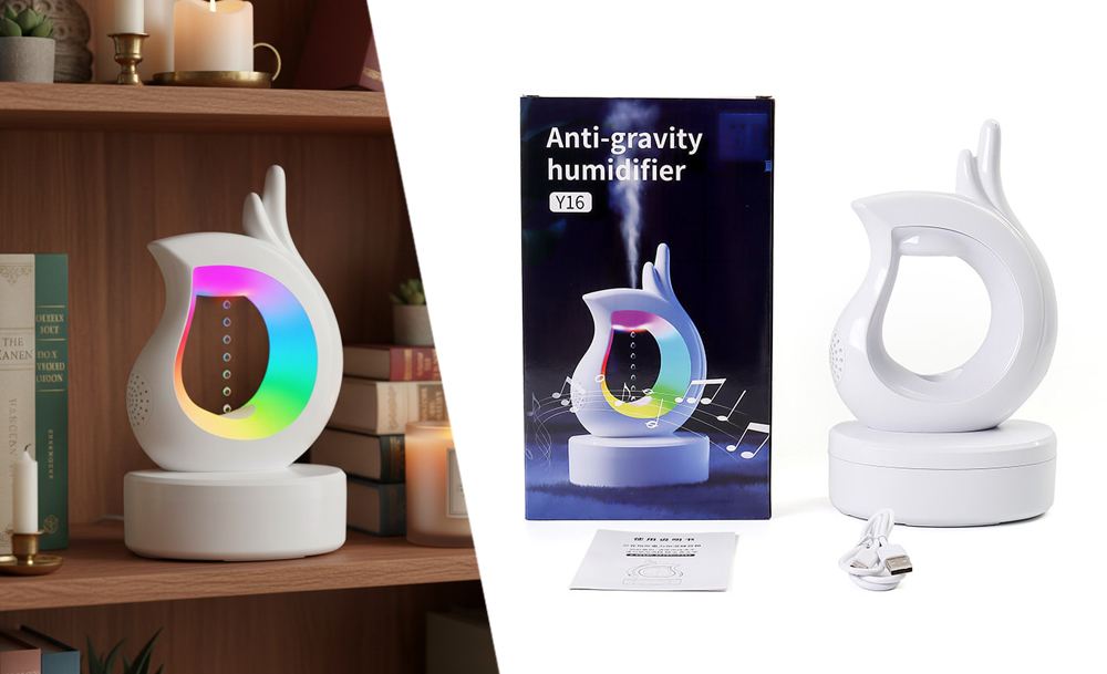 Ночник-увлажнитель Y-16 – это многофункциональное устройство для создания комфортной атмосферы. Он употребляет принцип оптической иллюзии антигравитации, создавая зрительный эффект подъема капель воды. Прибор эффективно увлажняет воздух в помещении площадью до 30 м2.