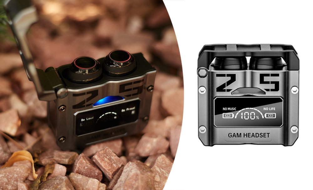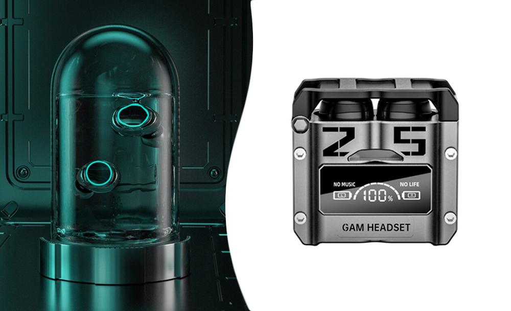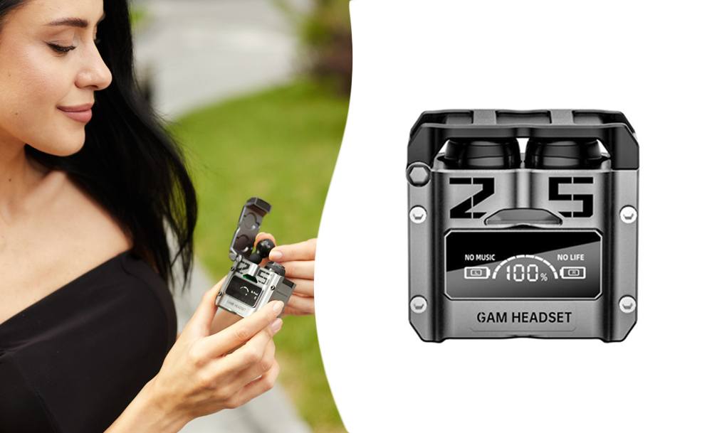 Наушники оснащены чувствительными кнопками, которые дают возможность воспроизведения и остановки звучания, управления громкостью, переключения треков, ответа на телефонные звонки. Кейс оснащен мощным аккумулятором, цифровым дисплеем и световым индикатором заряда.