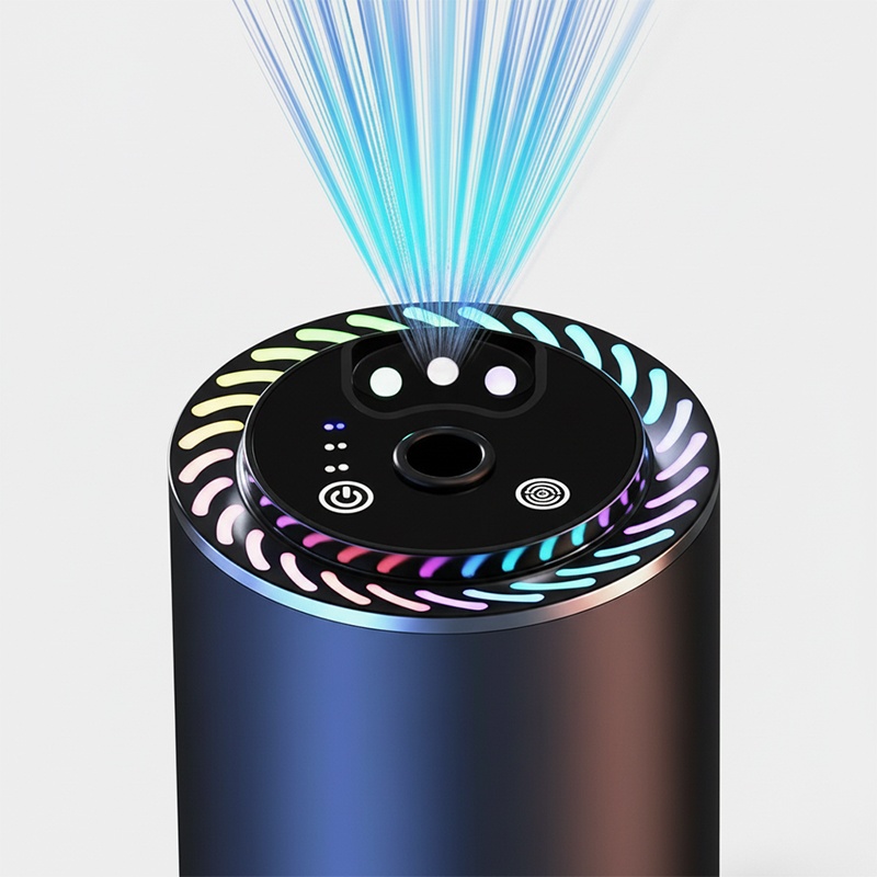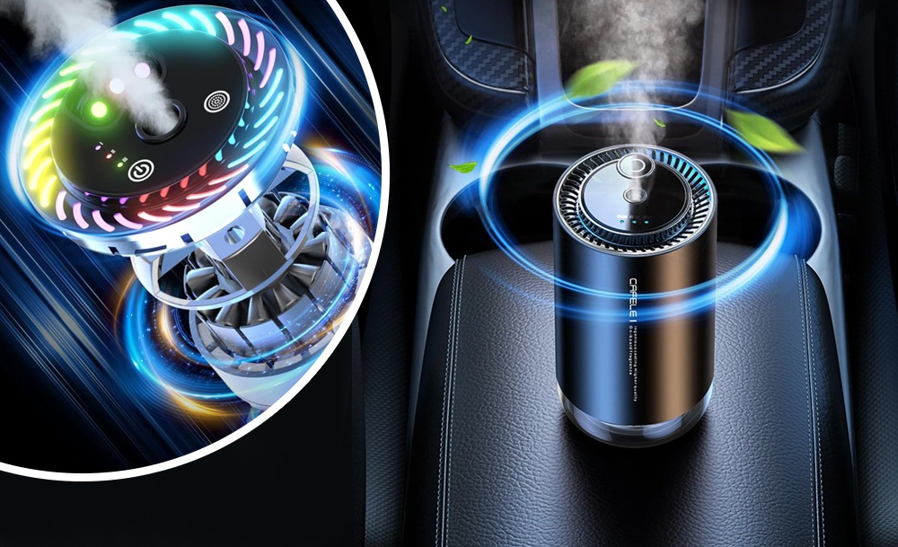 Это многофункциональное устройство сочетает функции автомобильного увлажнителя и диффузора эфирных масел. Он эффективно повышает влажность воздуха в салоне, предотвращая сухость, особенно при работе кондиционера или обогревателя.