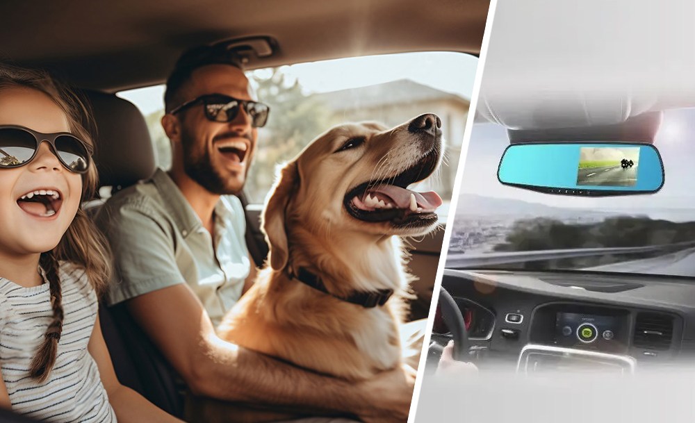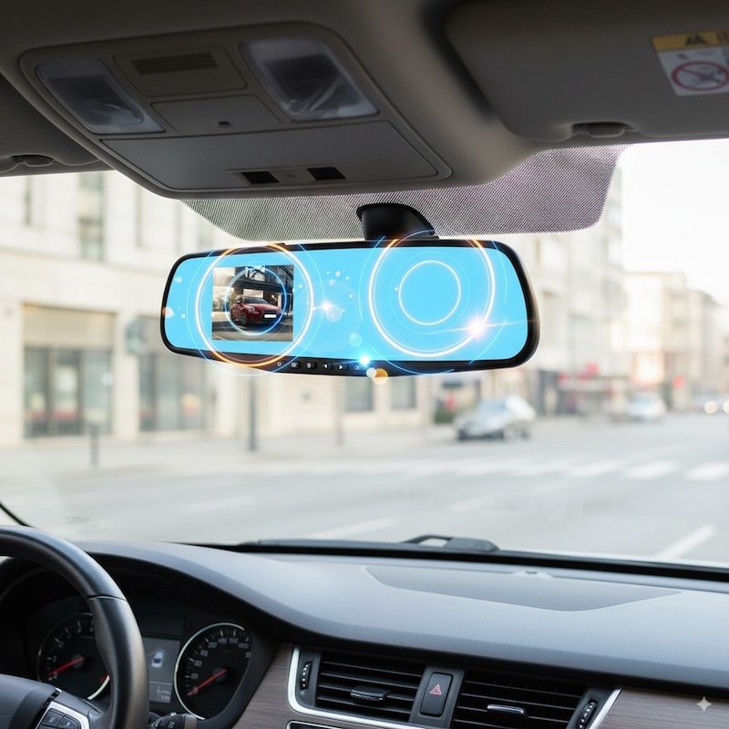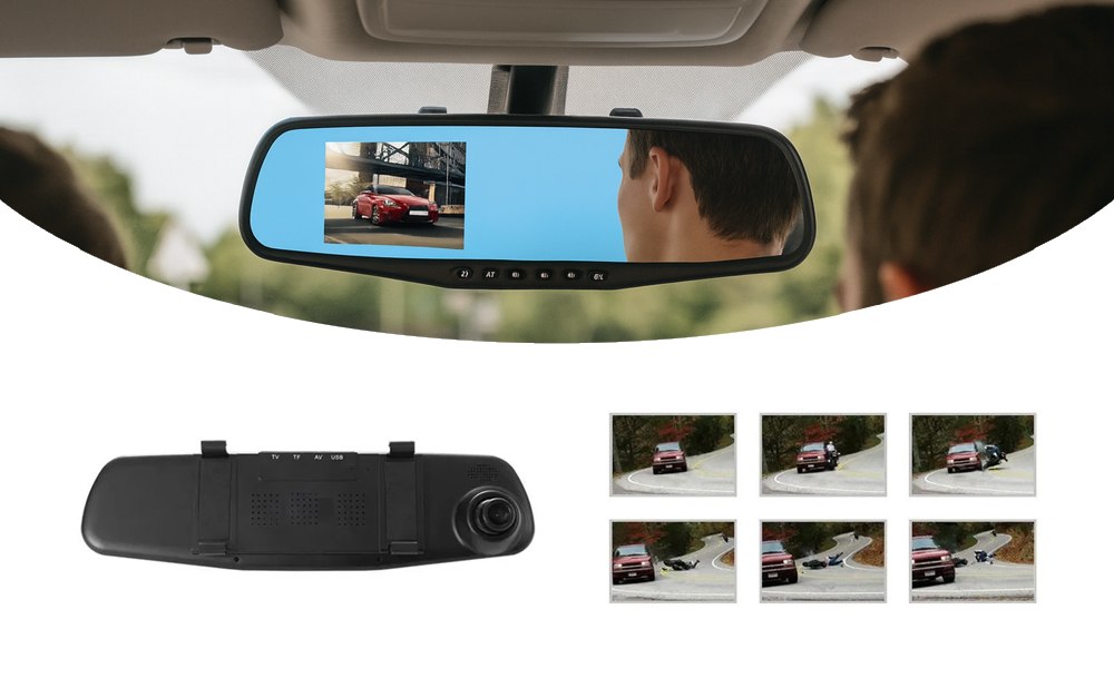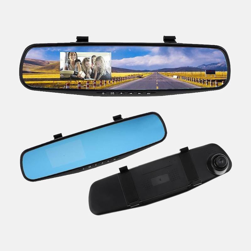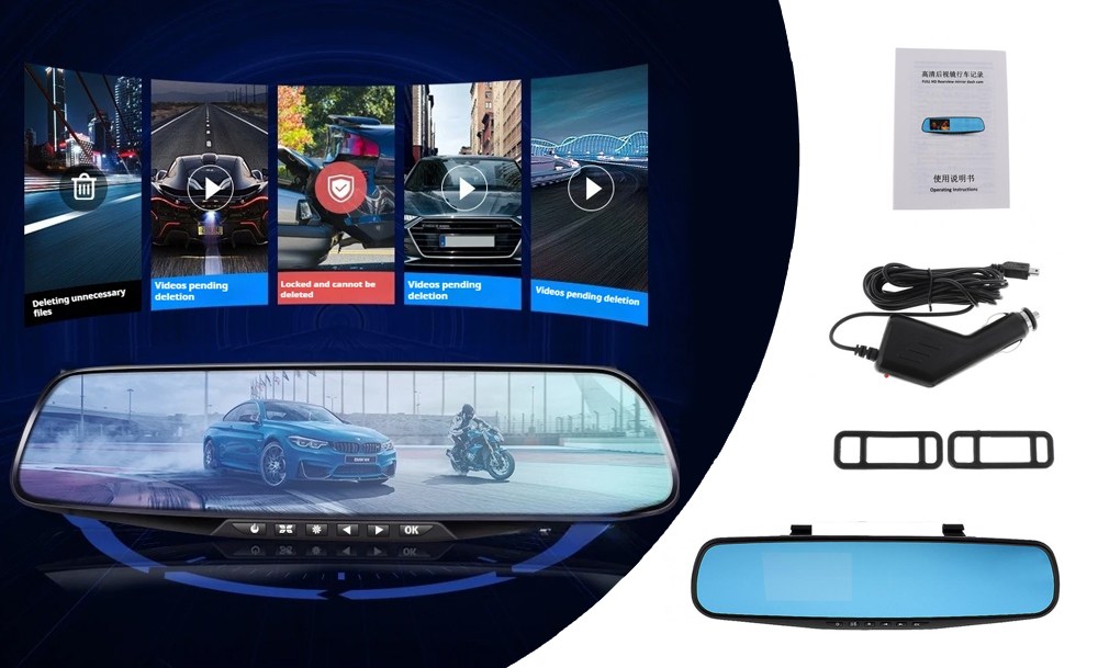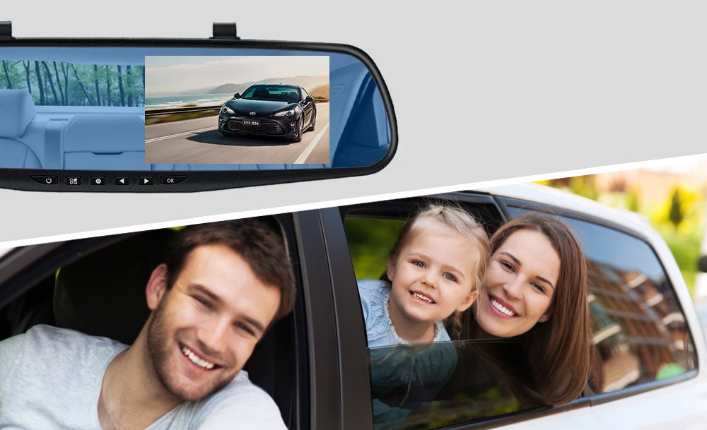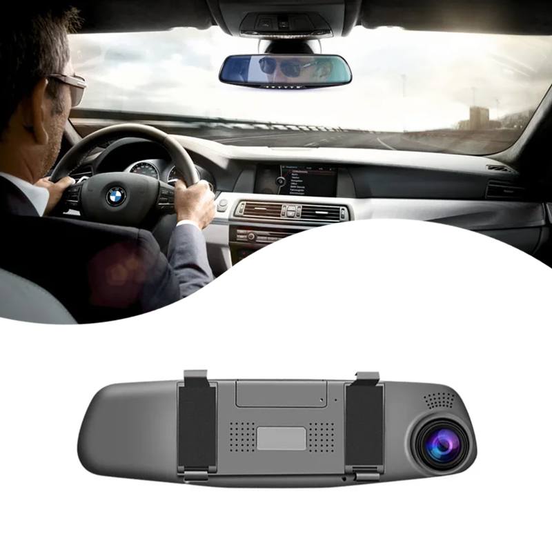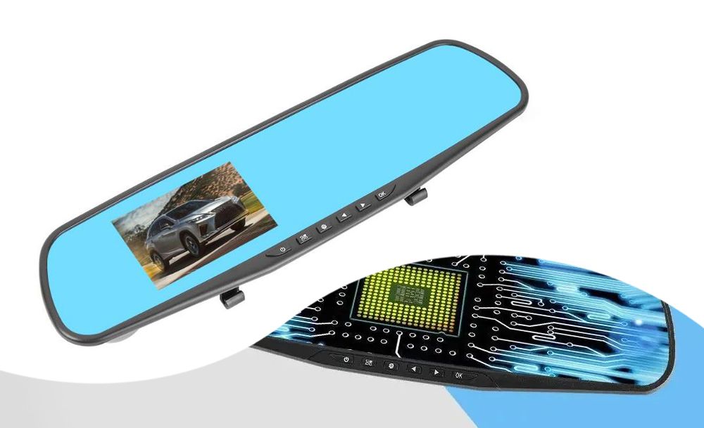 Устройство поддерживает ночную съёмку, циклическую запись и оснащено G-сенсором для автоматического сохранения важных файлов в случае аварии. Большой дисплей, встроенный в зеркало, позволяет просматривать видео в реальном времени, не мешая обзору.