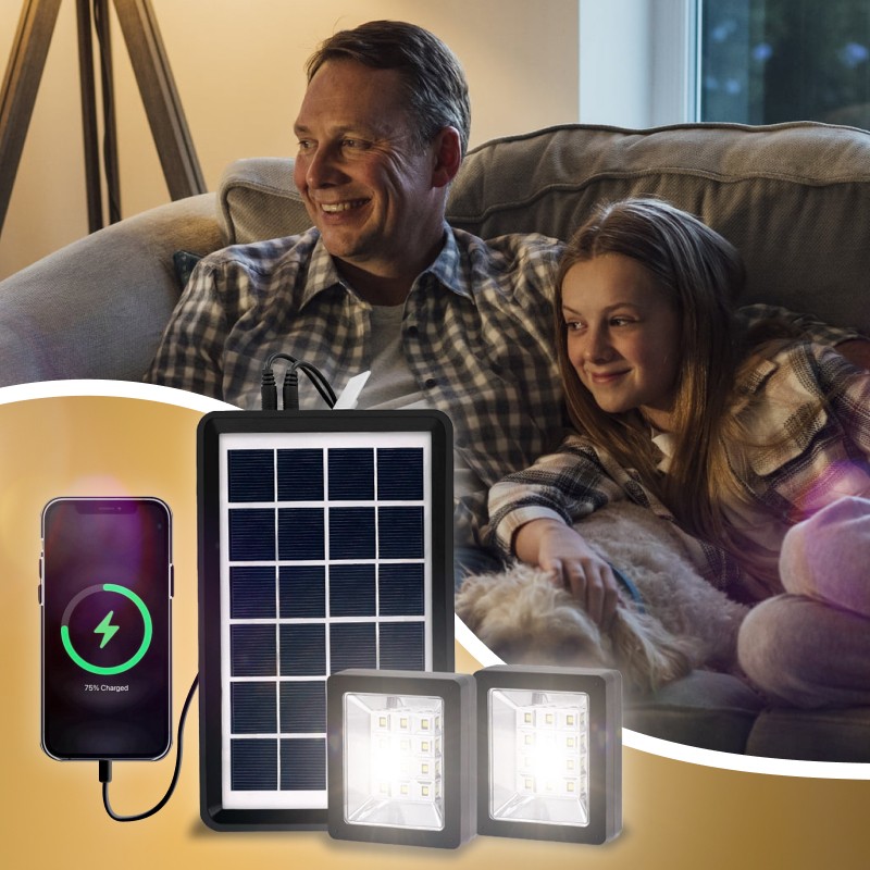 Автономная система освещения и зарядки мобильных устройств ЕР-05 с солнечной панелью – это портативная станция, способная работать в темное время суток везде, где нет электричества. Солнечная панель генерирует световой поток днем и преобразует его в источник энергии ночью. Две мощные светодиодные лампы-прожекторы качественно освещают большую площадь в помещении или снаружи.