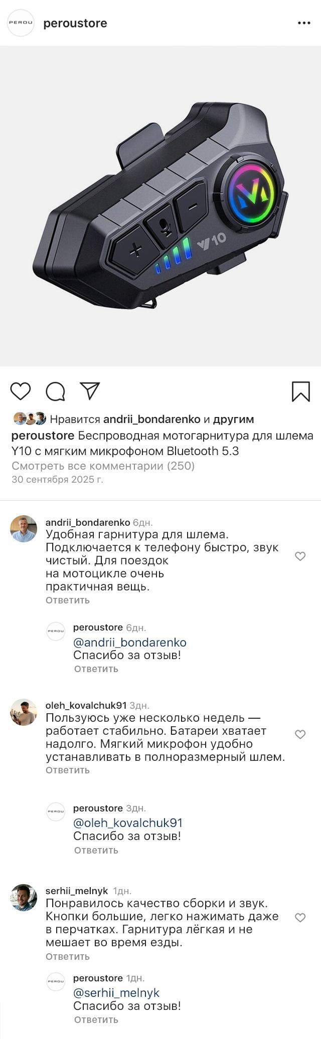 Беспроводная мотогарнитура Y10 с Bluetooth 5.3 обеспечивает стабильное соединение и чистый звук во время поездки. Устройство легко устанавливается в шлем и оснащено мягким микрофоном, который удобно располагается и точно передает голос.