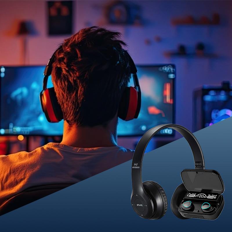 Этот комплект предлагает два типа беспроводных наушников для разных нужд. Вкладыши M10 с зарядным кейсом идеально подходят для повседневного использования, занятий спортом или путешествий. Кейс обеспечивает многоразовую подзарядку и удобное хранение. Они компактны и легки.