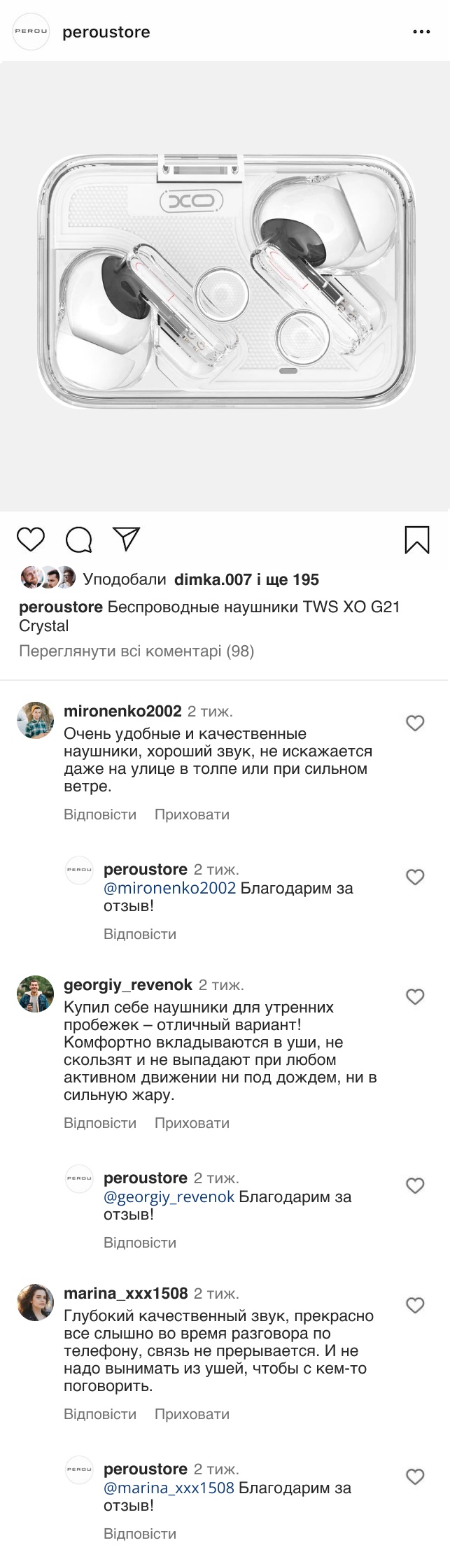 Наушники Bluetooth TWS XO G21 Crystal – это инновационное устройство, которое может предложить безупречный и качественный звук в любой ситуации. Они могут быть идеальным аксессуаром для использования во время занятий спортом, прогулок в парке или просто для комфортного прослушивания музыки дома или в офисе.