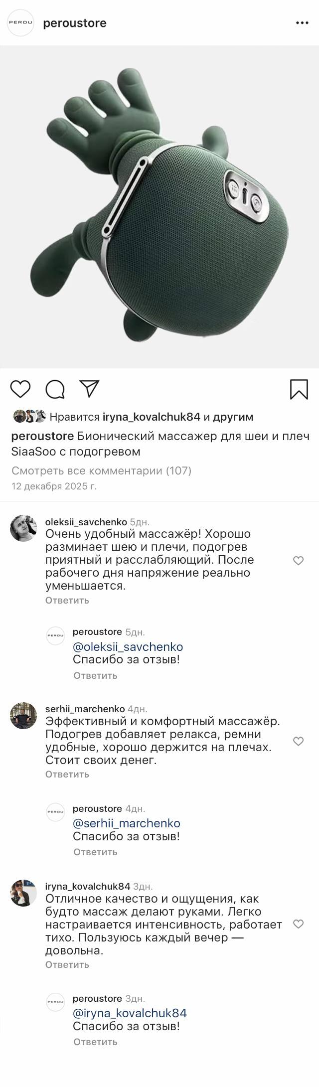 Бионический массажер для шеи и плеч SiaaSoo с подогревом – это быстрый и комфортный способ снять напряжение после рабочего дня. Он имитирует профессиональный массаж руками, глубоко расслабляя мышцы и устраняя спазмы. Встроенный подогрев улучшает кровообращение, усиливает эффект и дарит ощущение комфорта уже с первых минут.