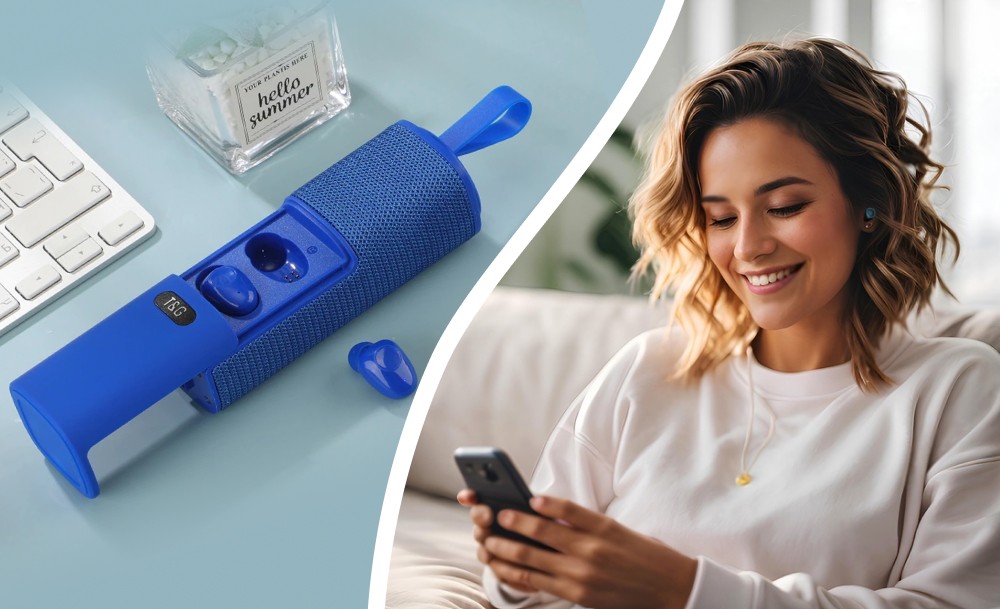 Bluetooth-колонка TG807 с наушниками и Power Bank – это новая акустическая система, сочетающая в себе сразу несколько функций. Мощный динамик и беспроводные TWS наушники с шумоподавлением обеспечивают чистый объемный звук. Технология Bluetooth 5.0 совмещается с любыми устройствами, быстро подключается и гарантирует стабильный устойчивый сигнал.