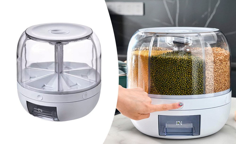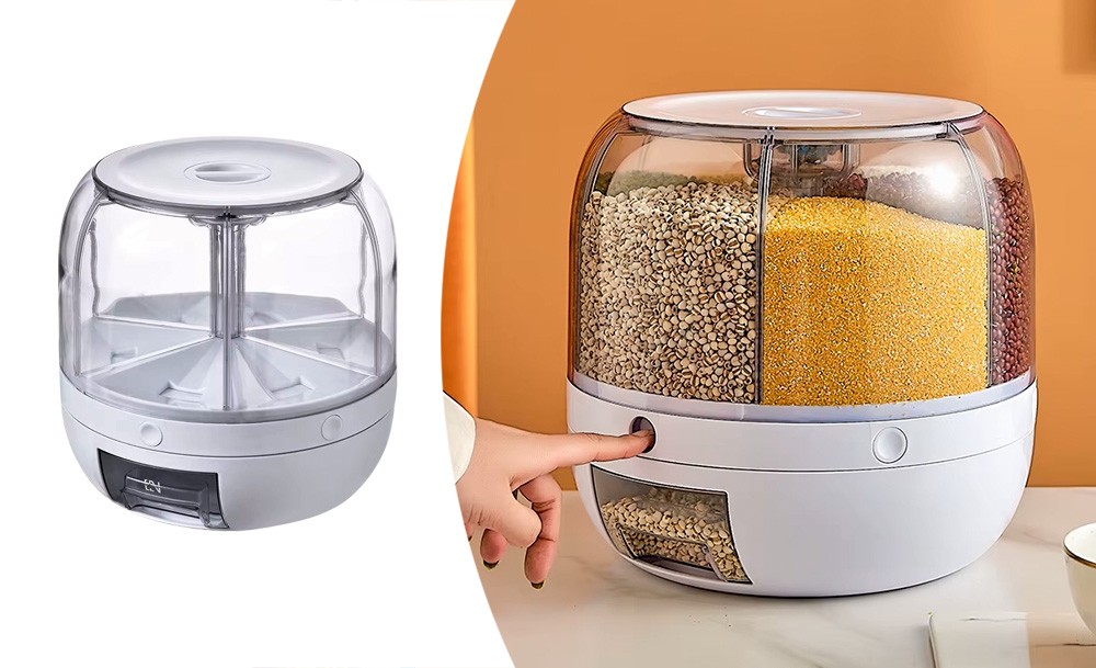 Каждая секция позволяет хранить различные продукты отдельно, что упрощает их использование и помогает содержать кухню в порядке. Благодаря вращающемуся механизму, диспенсер легко поворачивается, что обеспечивает быстрый доступ к нужным продуктам во время приготовления пищи.