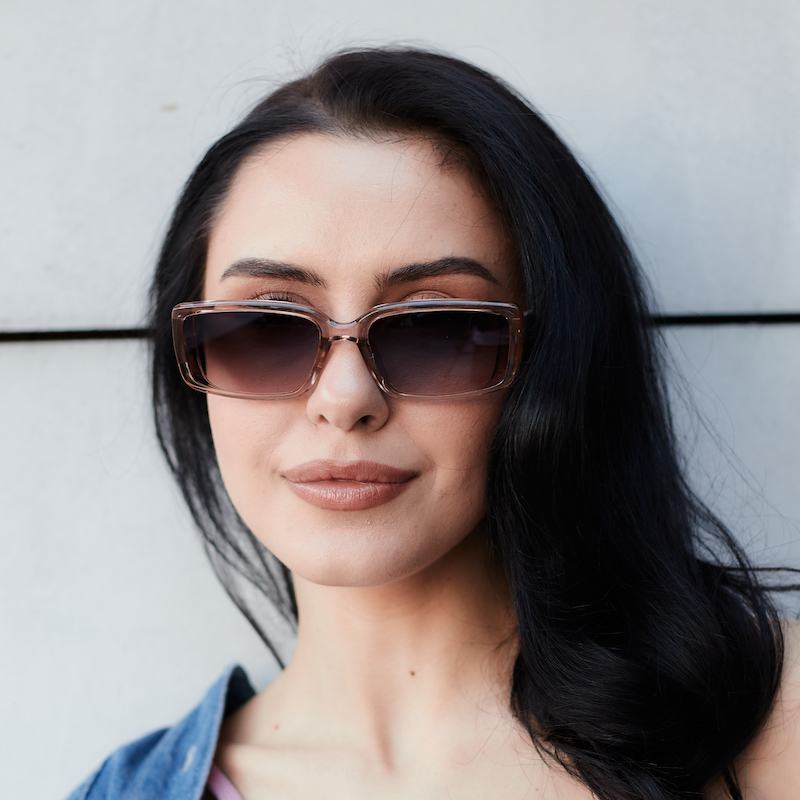 Легкая и прочная оправа с плавно закругленными заушниками удобно располагается на лице, не скользит, не сползает, а это значит – носить ее можно длительное время, ощущая себя комфортно. Темные линзы серого, коричневого или черного цветов надежно защищают глаза от ярких солнечных лучей и ультрафиолета.