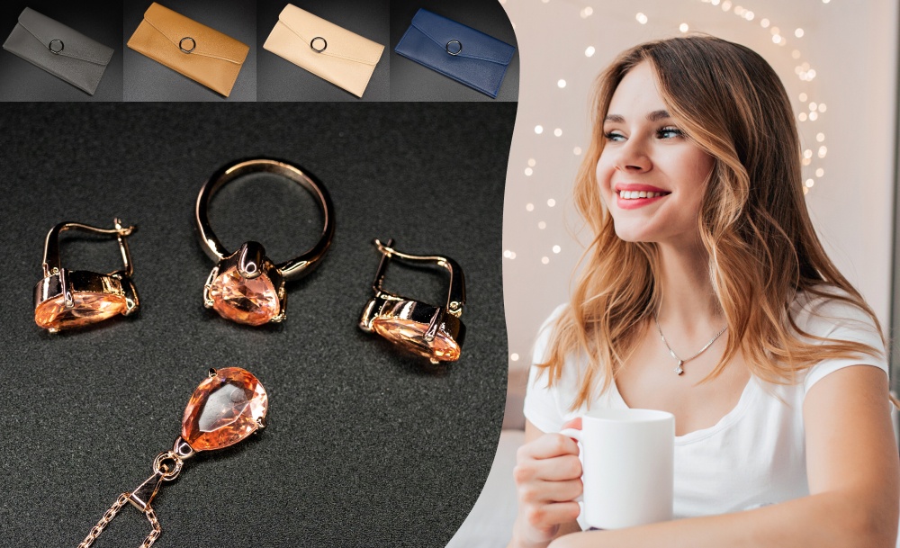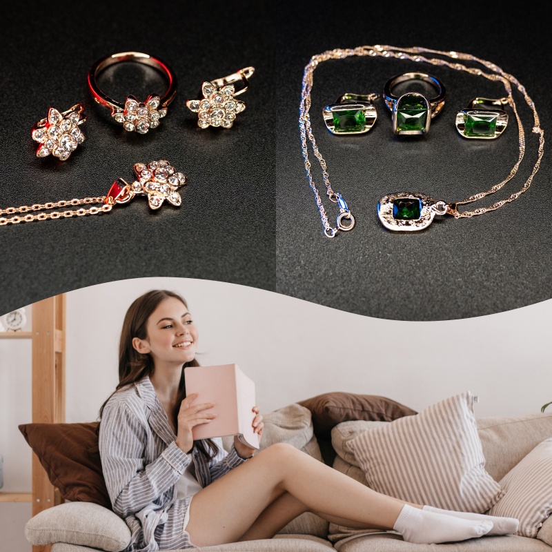 Булатный набор с фианитами включает в себя кулон, цепочку, серьги и кольцо представлен в нескольких разнообразных вариантах. Оригинальный дизайн и форма позолоченных украшений в сочетании с прозрачными фианитами бирюзового, розового, белого или бордового цвета – это создает элегантный и романтичный образ своей обладательницы.