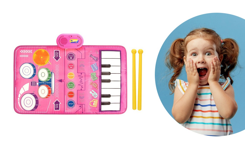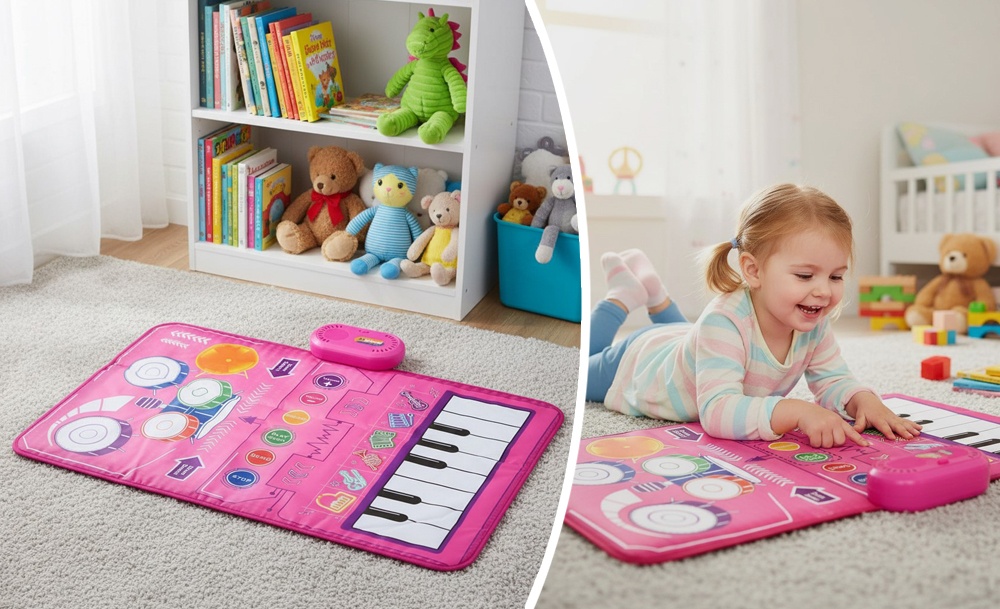 Этот интерактивный коврик предлагает детям творческое пространство для музыкальных экспериментов. Он объединяет фортепиано, барабаны и всевозможные звуковые эффекты, позволяя малышам создавать собственные мелодии.