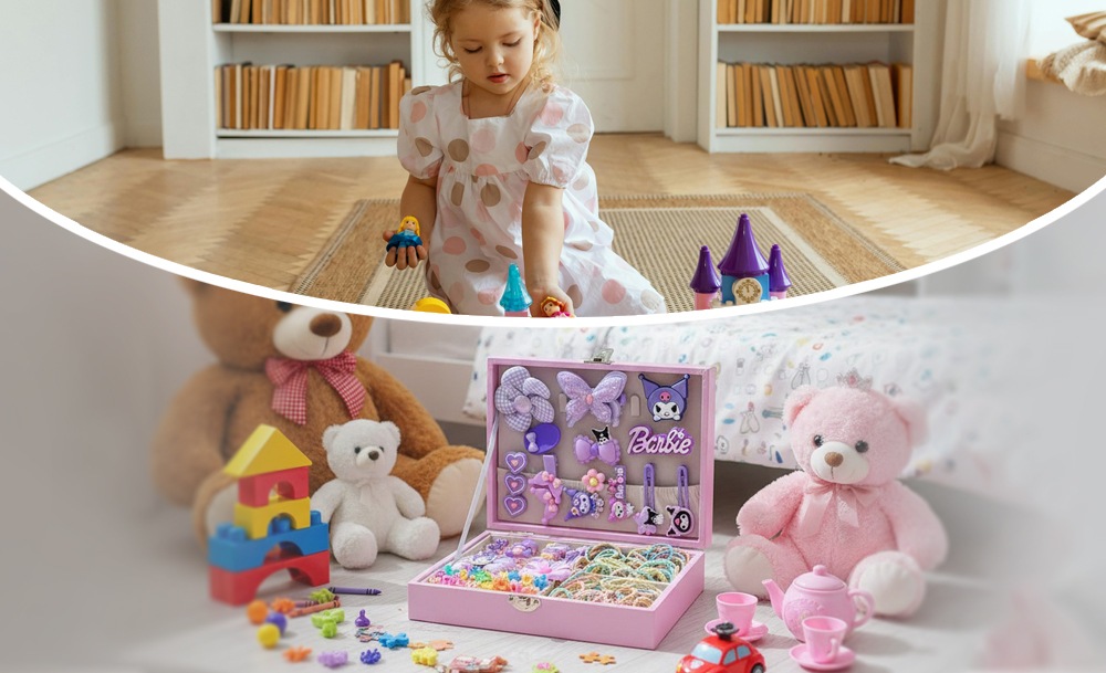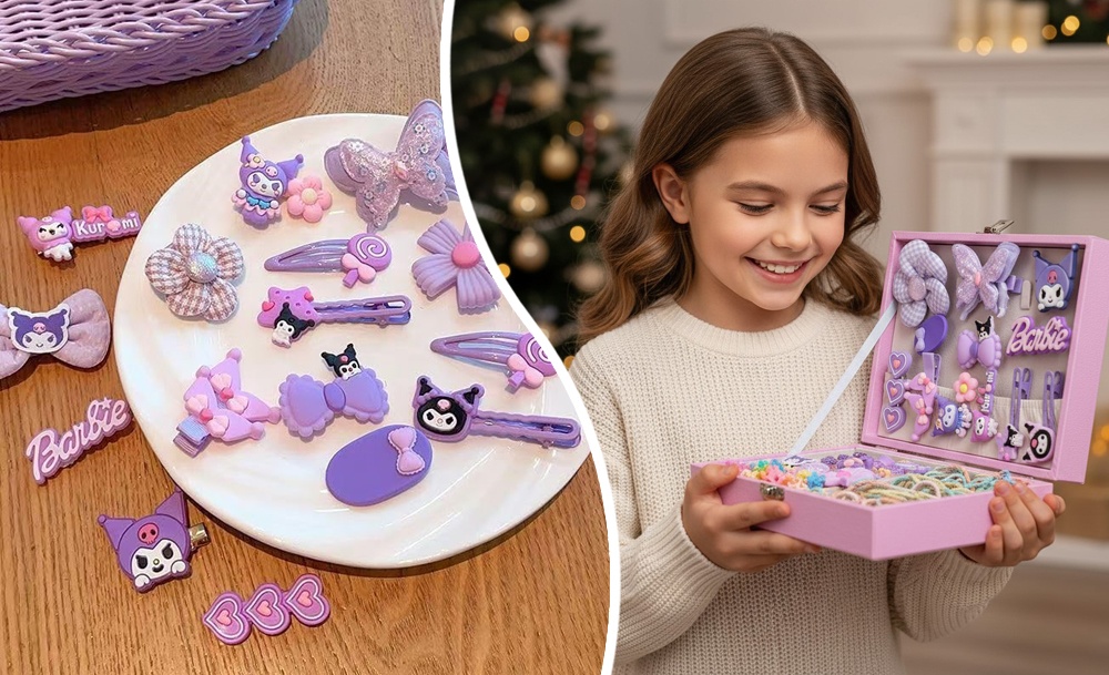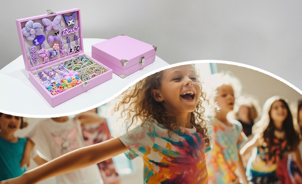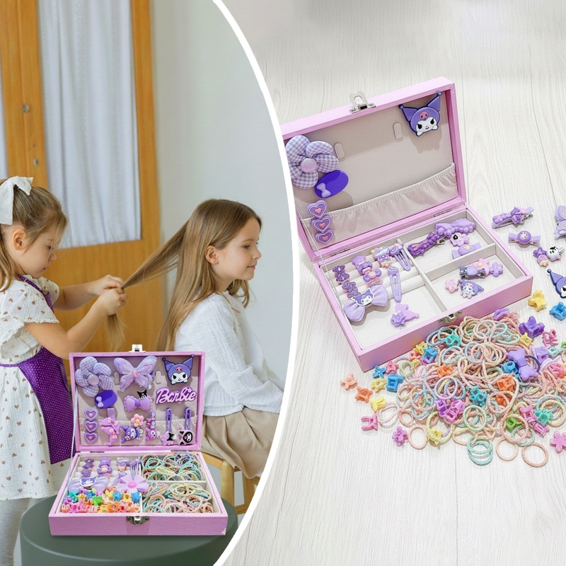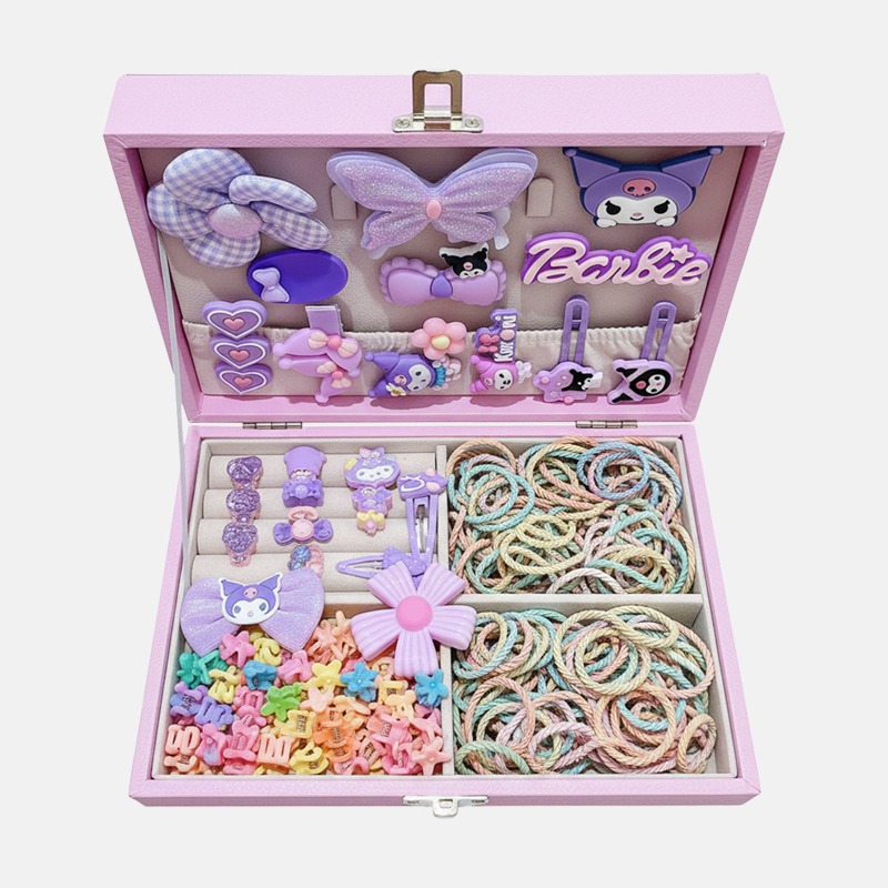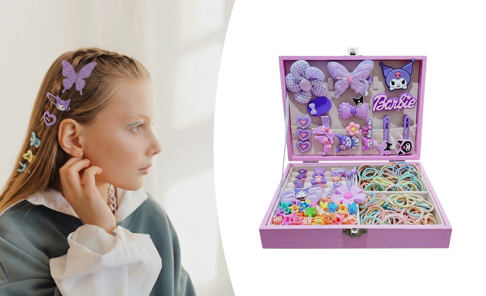 Все аксессуары размещены в многоуровневой коробке. Органайзер помогает поддерживать порядок и удобно хранить мелкие предметы. Набор идеально подходит для повседневного использования, а также для праздничных образов. Он развивает творчество и мелкую моторику при создании причесок. Аксессуары безопасны для детских волос.