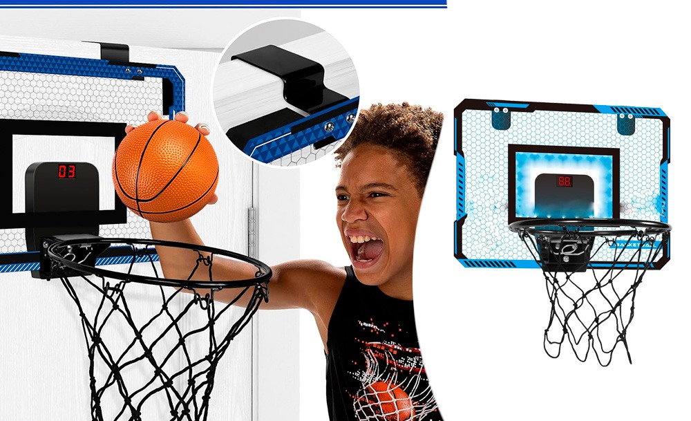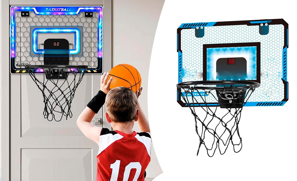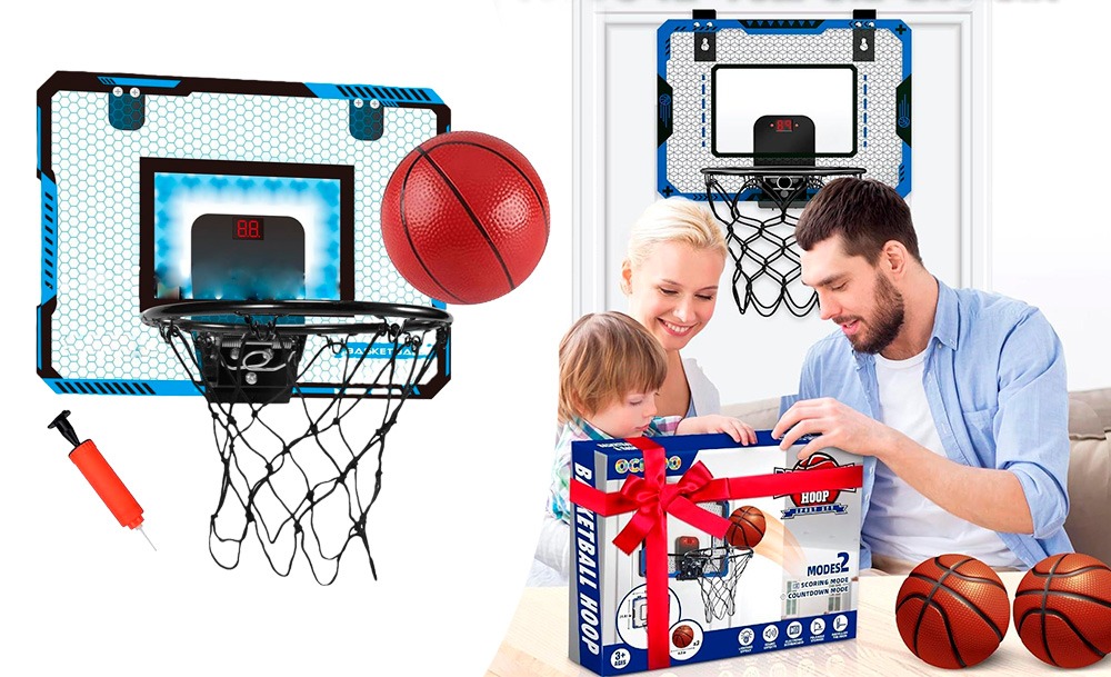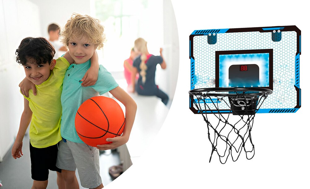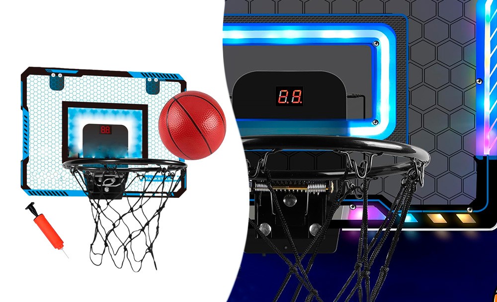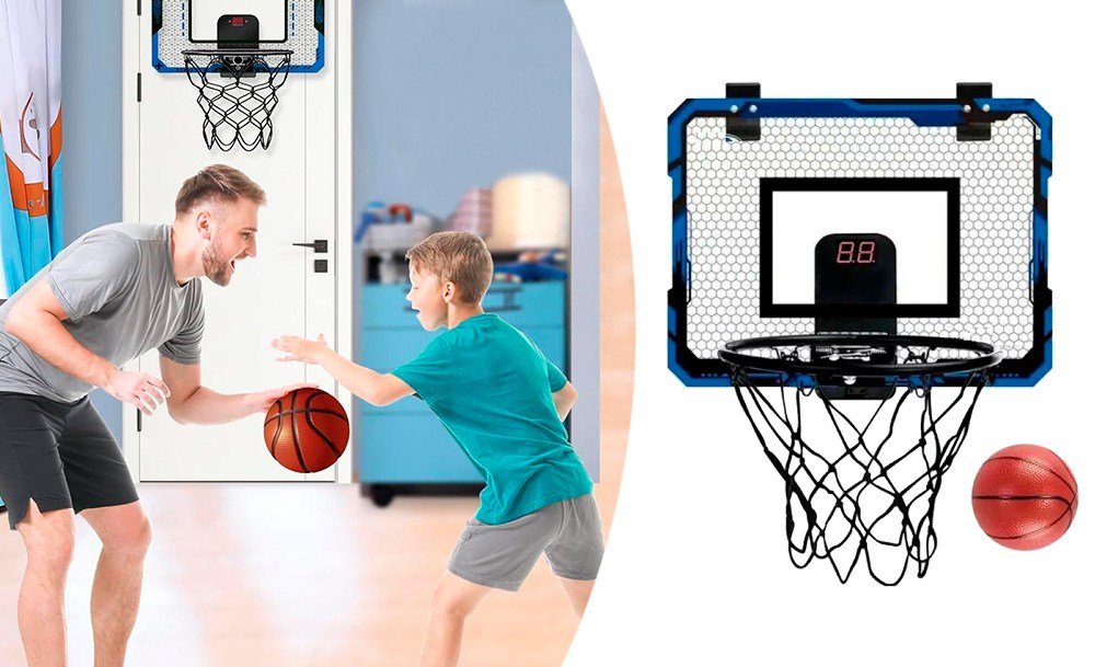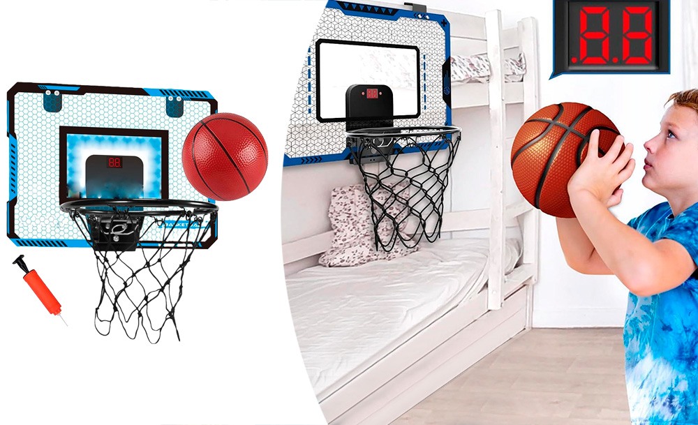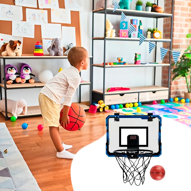 Детский баскетбольный набор с электронным табло – это идеальный аксессуар для активных игр и первых спортивных достижений! Комплект включает все необходимое для увлекательной игры: прочный пластиковый щит, металлическое кольцо с сеткой, мяч и насос. Электронное табло со звуковыми эффектами делает процесс игры динамичным и увлекательным, фиксируя каждое попадание в кольцо.