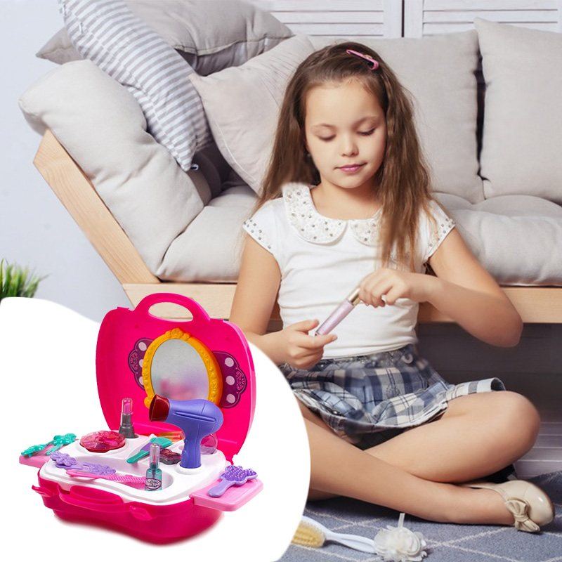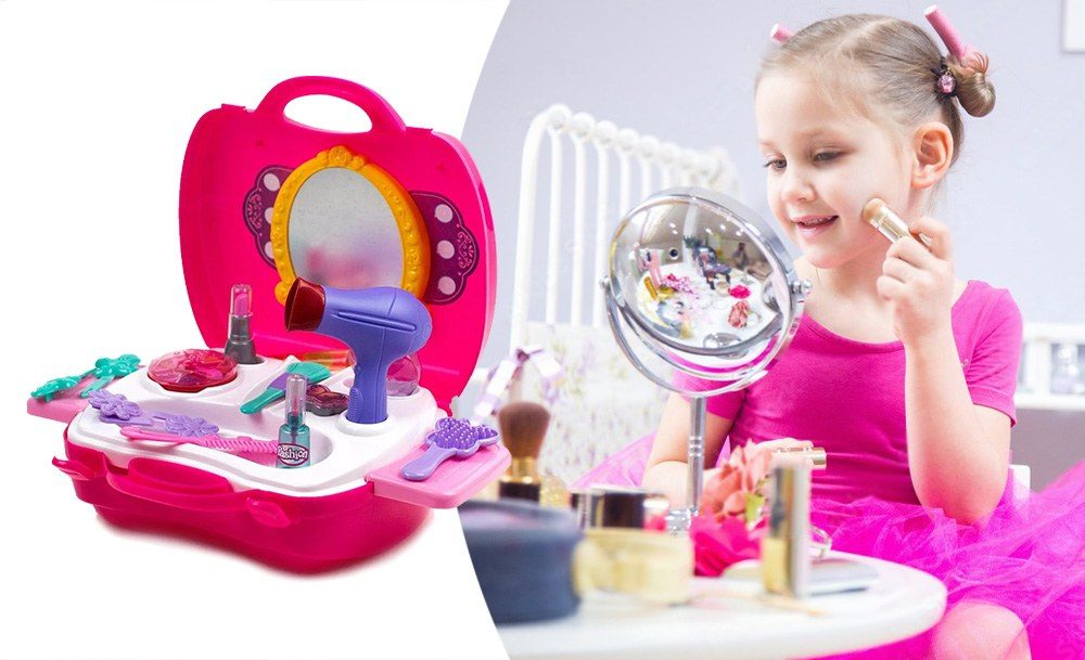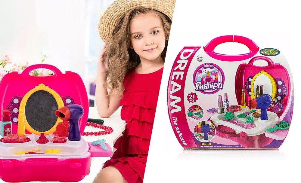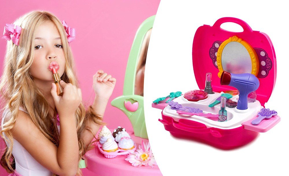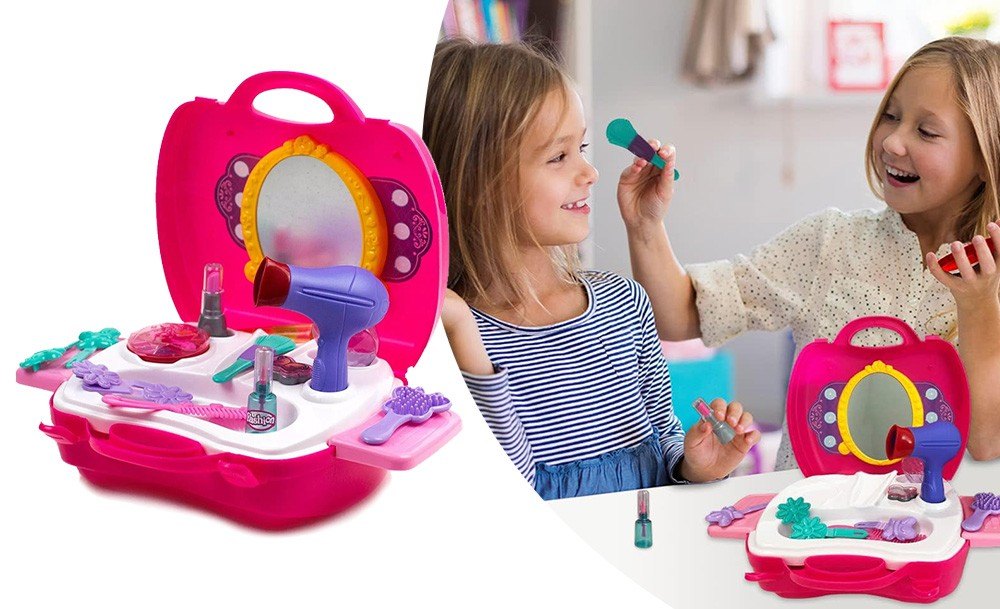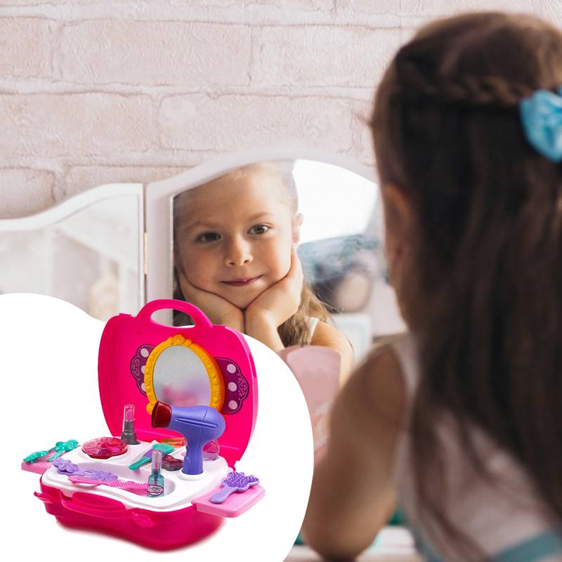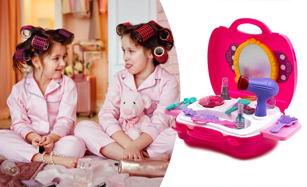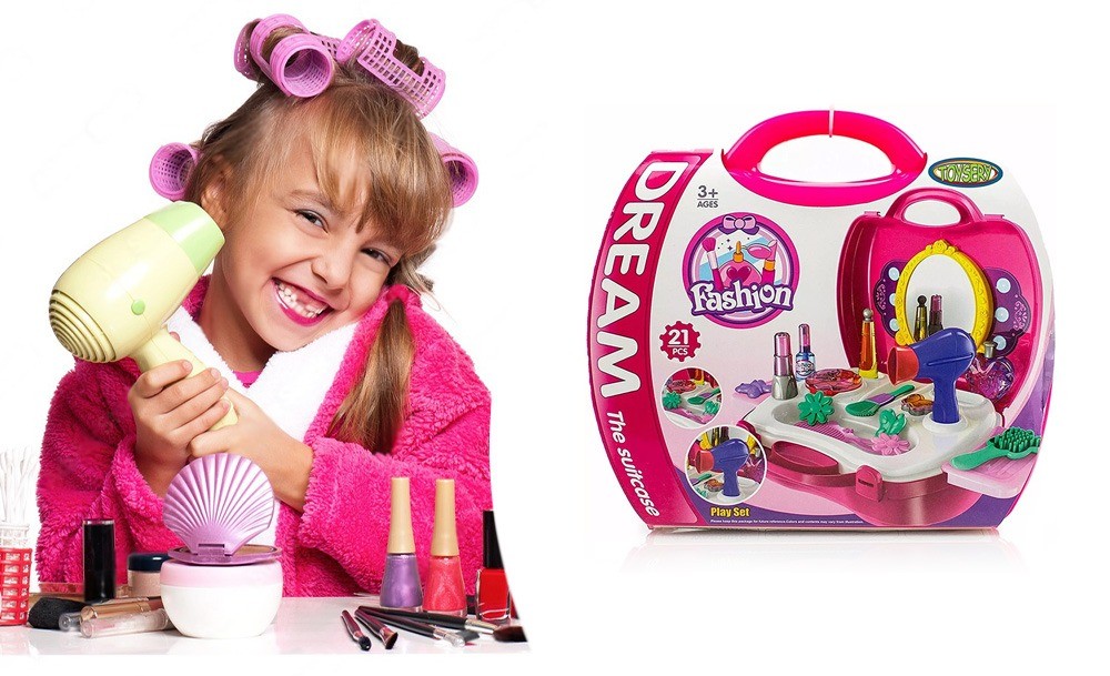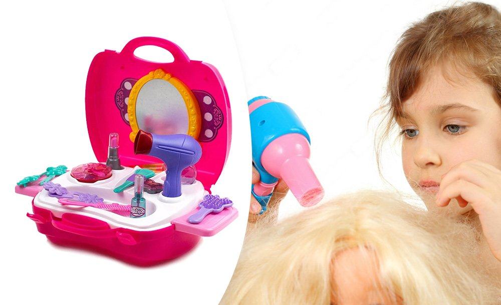 Набор парикмахера Салон красоты для роскошных девчонок. Теперь все аксессуары даже лучше, чем у мамы. Тут найдется и фен, и расческа, и гребешок, и парфюм, и косметика, тени и даже отдельная кисточка для них. Теперь выглядеть бесподобно можно и дома, устраивая сеансы для себя или для подружек, преображая и поражая их.