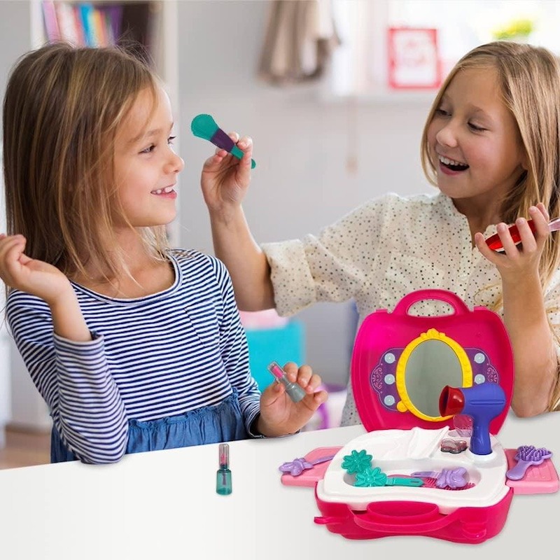 Набор парикмахера Салон красоты для роскошных девчонок. Теперь все аксессуары даже лучше, чем у мамы. Тут найдется и фен, и расческа, и гребешок, и парфюм, и косметика, тени и даже отдельная кисточка для них. Каждый элемент игрового набора изготовлен из качественной пластмассы, очень детализирован, что сделает игру в правдоподобной и увлекательной.