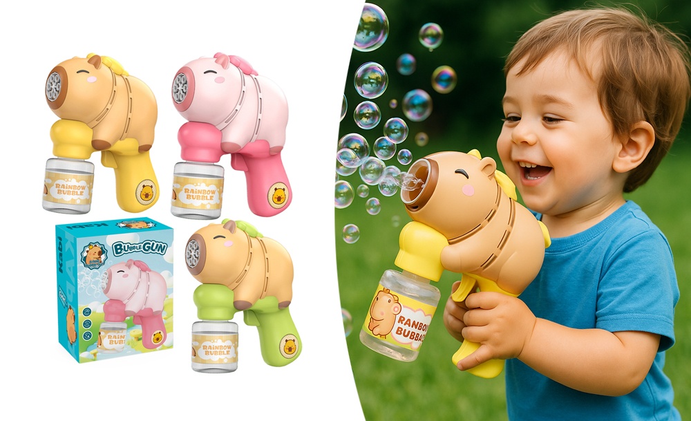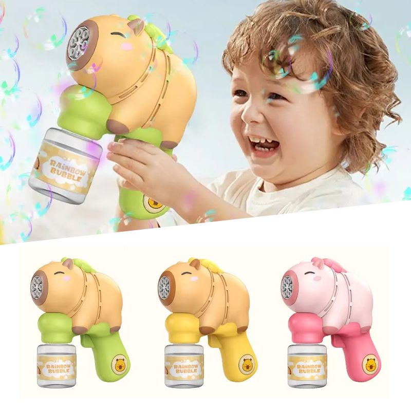 Детский автомат для мыльных пузырей Capybara Bubbles — это удобное и безопасное развлечение для детей любого возраста. Благодаря автоматическому режиму он генерирует множество пузырей за считанные секунды. Эргономичная форма и приятный дизайн в виде капибары делают его удобным как для дома, так и для улицы.