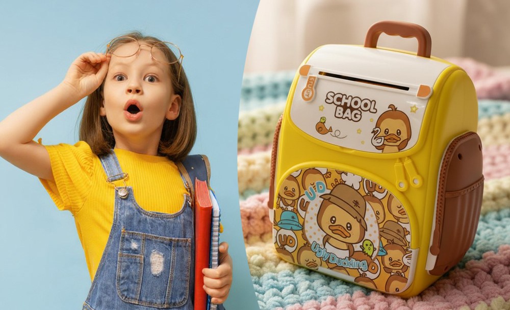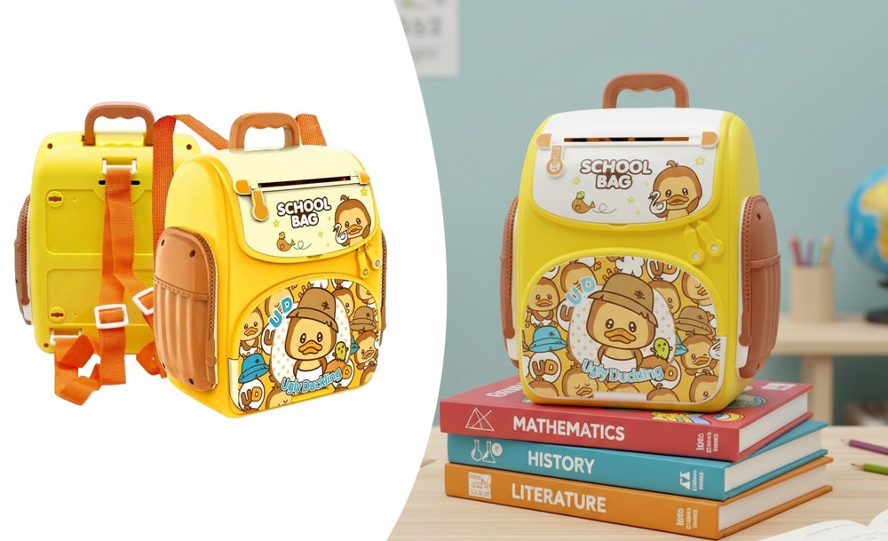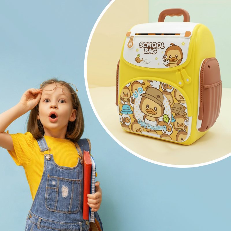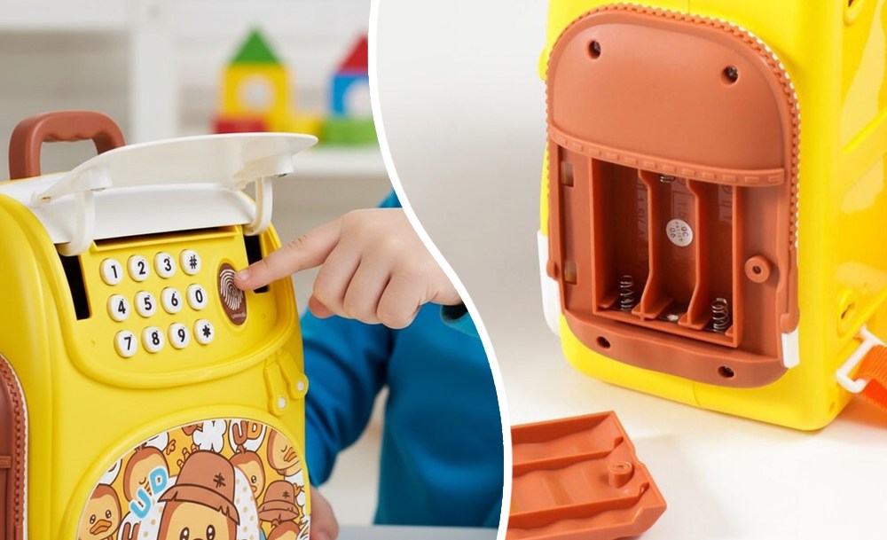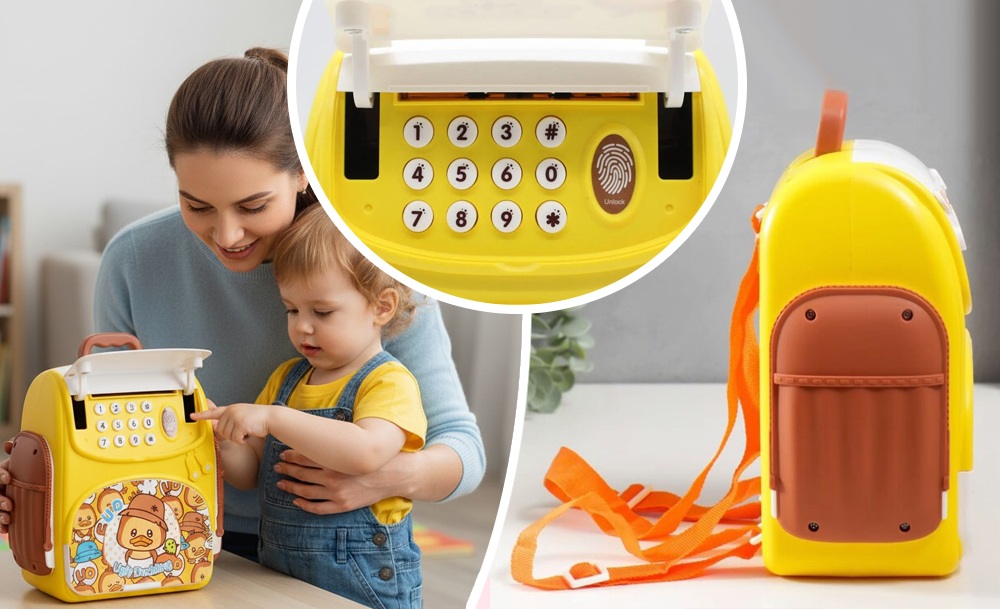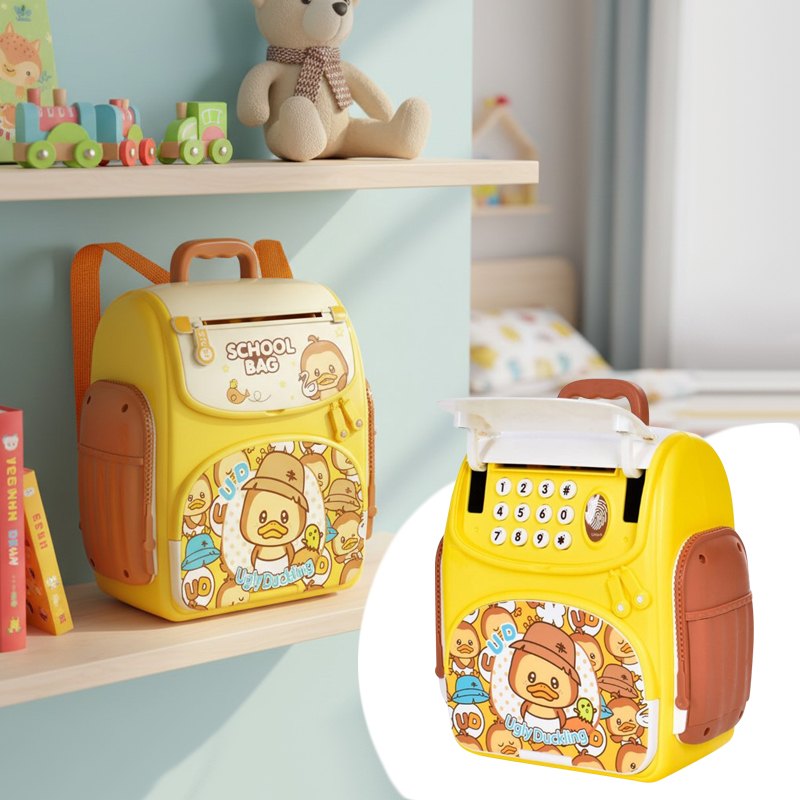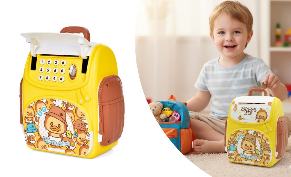 Эта копилка-рюкзак “Ugly Duckling” с красочным дизайном удивит любого ребенка! Ведь это не не просто копилка — это настоящий детский сейф, который превращает накопление в увлекательную игру. Главной особенностью копилки является функция автоматической затяжки купюр, имитирующая работу настоящего банковского терминала.