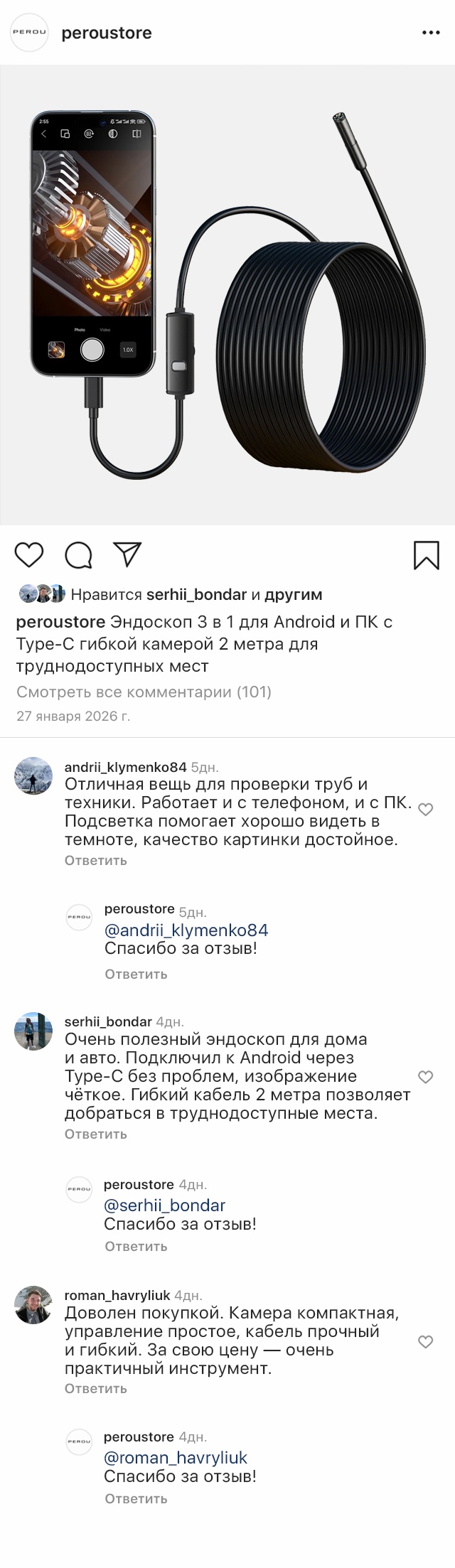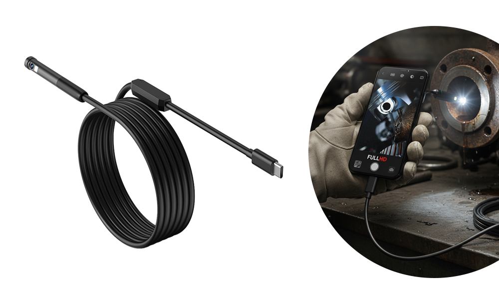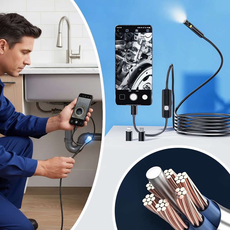 Гибкий кабель позволяет легко заглянуть в узкие щели и недоступные уголки, а высокое качество изображения гарантирует четкую картинку в реальном времени. Компактный и удобный, этот эндоскоп превращает сложные проверки в легкую и безопасную задачу. Он идеально подходит для ремонта, диагностики и осмотра любых объектов.