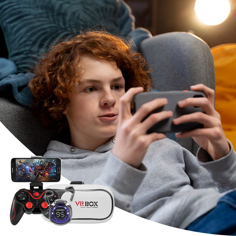 Комплект из геймпада для телефона, очков виртуальной реальности VR BOX 2.0 и беспроводных наушников Ultrapods Pro — это идеальное решение для полного погружения в мир мобильных игр и мультимедиа. Геймпад обеспечивает удобное управление и точный контроль, VR-очки создают эффект присутствия, а наушники с качественным звуком делают игровой процесс ещё более захватывающим.