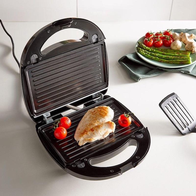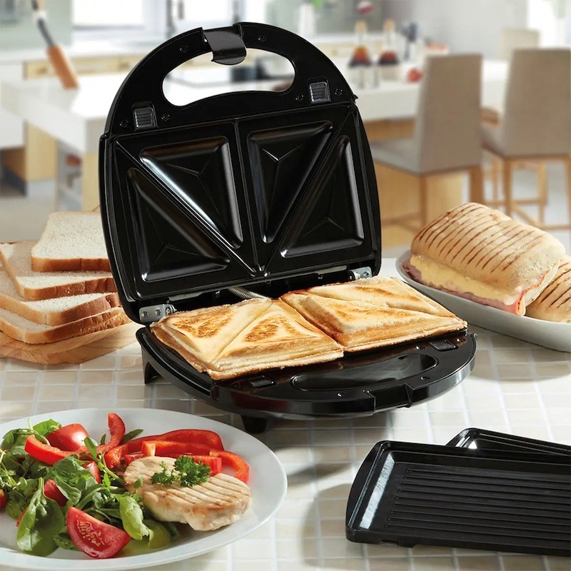 Гриль, бутербродница, вафельница, орешница 4 в 1 – это незаменимый многофункциональный прибор, позволяющий приготовить разнообразные любимые блюда в домашних условиях. С помощью сменных насадок с антипригарным покрытием можно легко сделать хрустящие тосты для бутербродов, мягкие бельгийские вафли или формочки для орешков; пожарить на гриле мясо, колбаски и овощи.