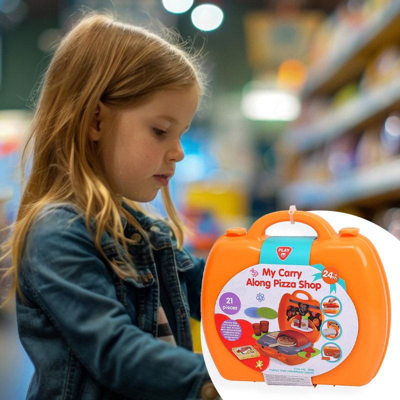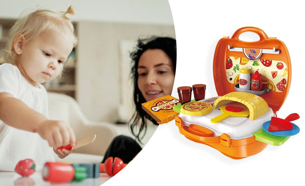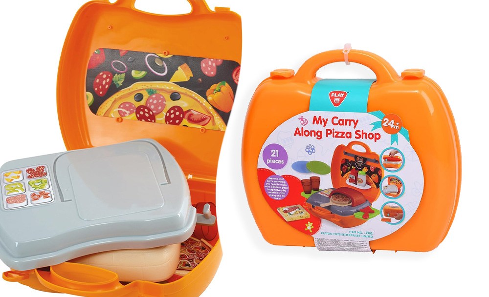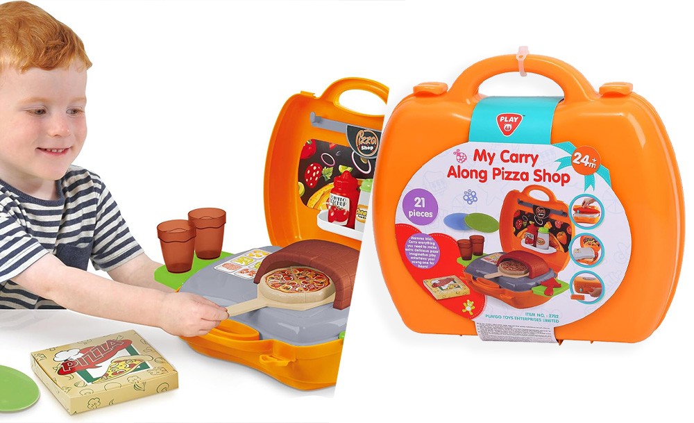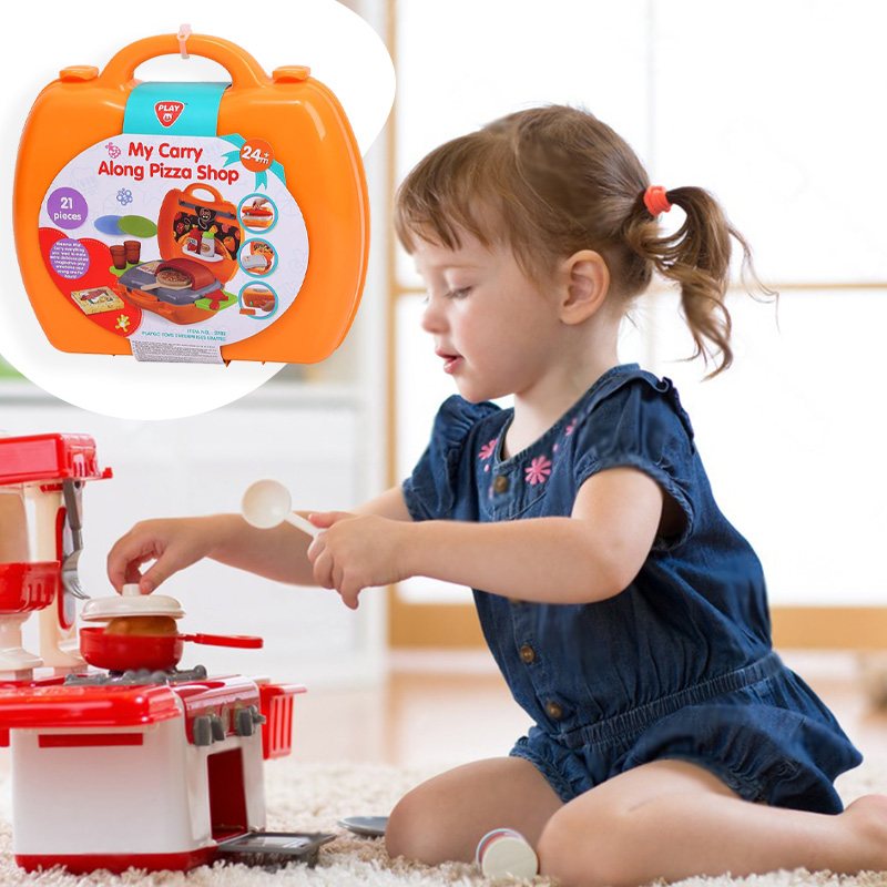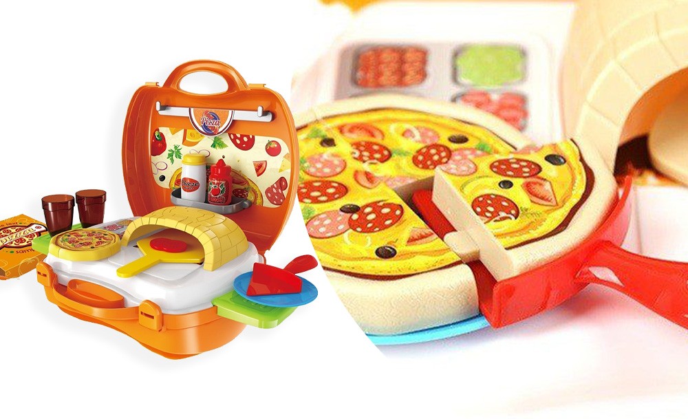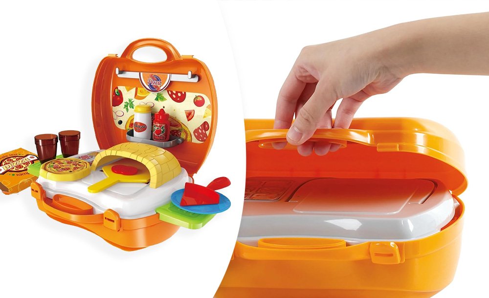Игровой набор Pizza включает 22 предмета и предназначен для детей, желающих окунуться в мир приготовления вкусных пицц и кулинарных фантазий. Переносная пиццерия собирается в один очень удобный чемоданчик на защелках. В раскрытом виде игра представляет собой небольшую рабочую зону с печью и зоной для хранения продуктов и инструментов. С таким набором ребенок почувствует себя настоящим пиццеолом!