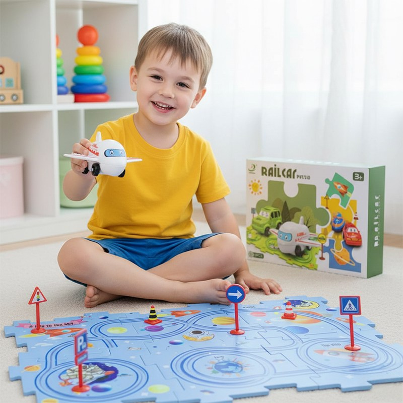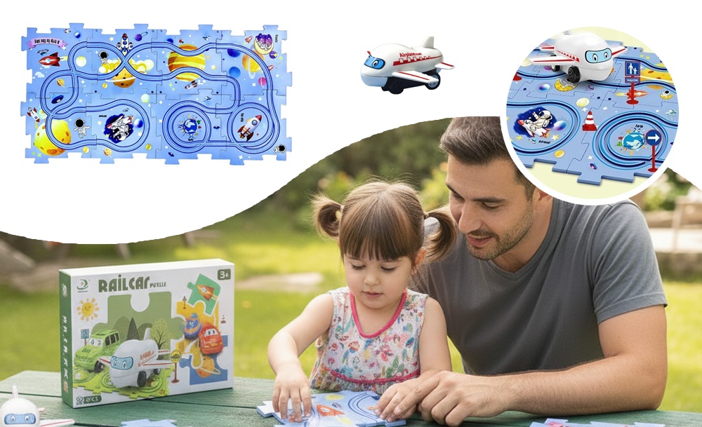 Игра стимулирует пространственное мышление и мелкую моторику рук при сборке пазлов. Наблюдение за движением самолетика помогает развивать зрительную координацию и концентрацию внимания. Каждый построенный маршрут каждый раз дарит ребенку чувство успеха от собственного инженерного решения. Набор легко разбирается и компактно хранится.