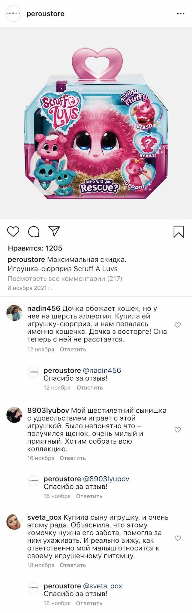 Игрушка-сюрприз Scruff A Luvs это неожиданный подарок для ребенка, когда неприглядный плюшевый комочек превращается в яркого пушистого домашнего питомца. Но чтобы он стал красивым и привлекательным, ребенок должен проявить о нем заботу – помыть, высушить, расчесать и украсить. И только тогда можно понять, кто появился в доме – котенок, щенок или зайка. Розовый или голубой зверек высотой около 25 см. с мягкой блестящей шерстью.