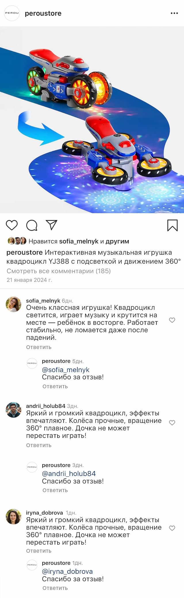 Интерактивный музыкальный квадроцикл YJ388 — это яркая игрушка для забавной игры! Он светится, проигрывает весёлые мелодии и вращается вокруг своей оси на 360°. Дети будут в восторге от такого зрелищного и музыкального развлечения.