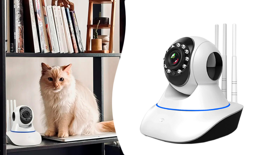 IP-камера видеонаблюдения CAD-6030A – обладает возможностью вращения в горизонтальной и вертикальной плоскости и оснащена встроенным датчиком движения, а также функцией отправки сообщений, которую можно настроить с помощью приложения для мобильных устройств.