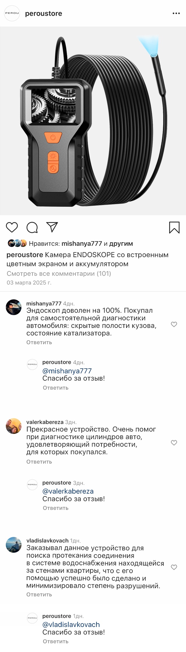 Автомобильный эндоскоп подходит для обслуживания любой бытовой техники, инспектирования и ремонта автомобильных узлов и различного оборудования. Камера-эндоскоп с разрешением 1920*1080 пикселей позволяет записывать видео и делать фото с богатым контрастом и высокой точностью деталей. С его помощью можно внимательно рассмотреть структуру любой поверхности и выявить мелкие повреждения.