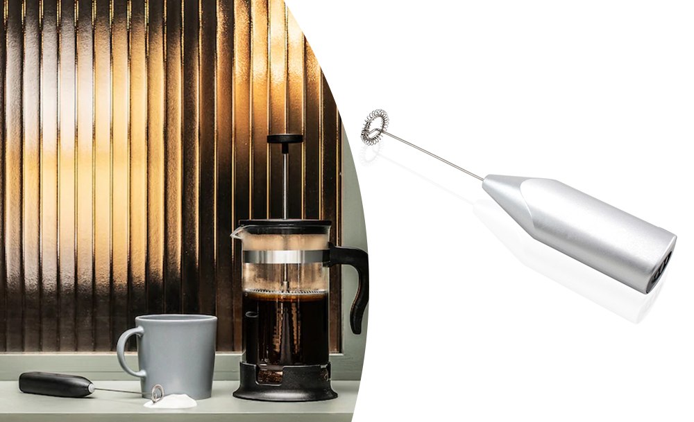 Капучинатор – небольшой миксер для вспенивания сливок и молока. На весь процесс требуется 15-20 сек. Работает от 2 батареек типа АА. Венчик из нержавеющей стали не окисляется и не ломается. Угловой поддон для пищевых продуктов и посуды, а также место для хранения моющих средств.