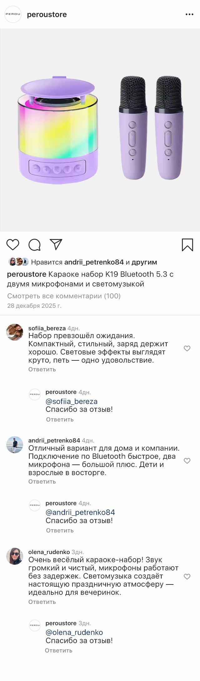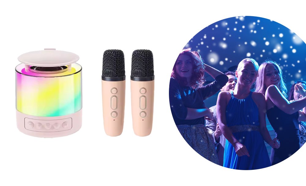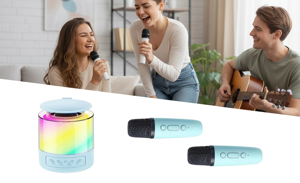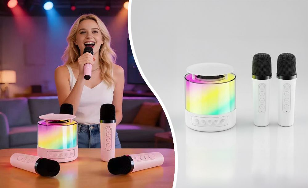 Караоке-набор K19 – готовое решение для семейных праздников и дружеских встреч. Портативная колонка с яркой LED-подсветкой превращает любое место в зажигательный танцпол. Чистый стереозвук с глубокими басами и динамичная светомузыка создают атмосферу настоящей вечеринки где угодно – дома, на природе или в поездке.