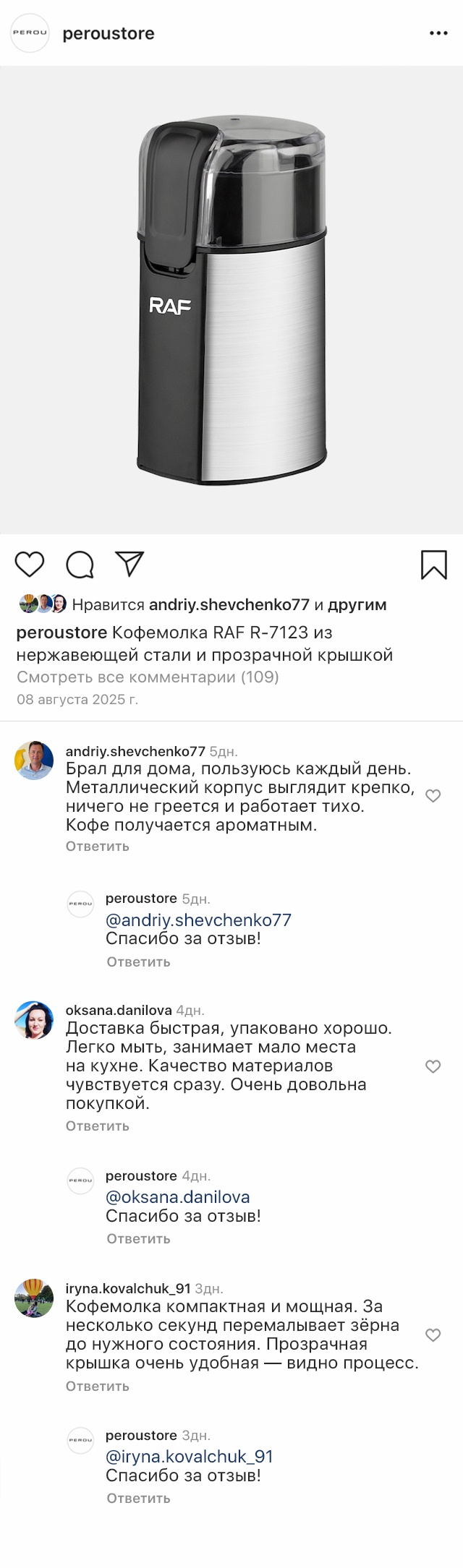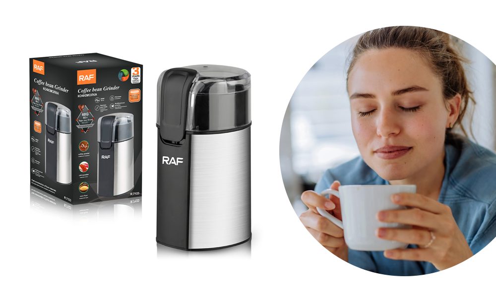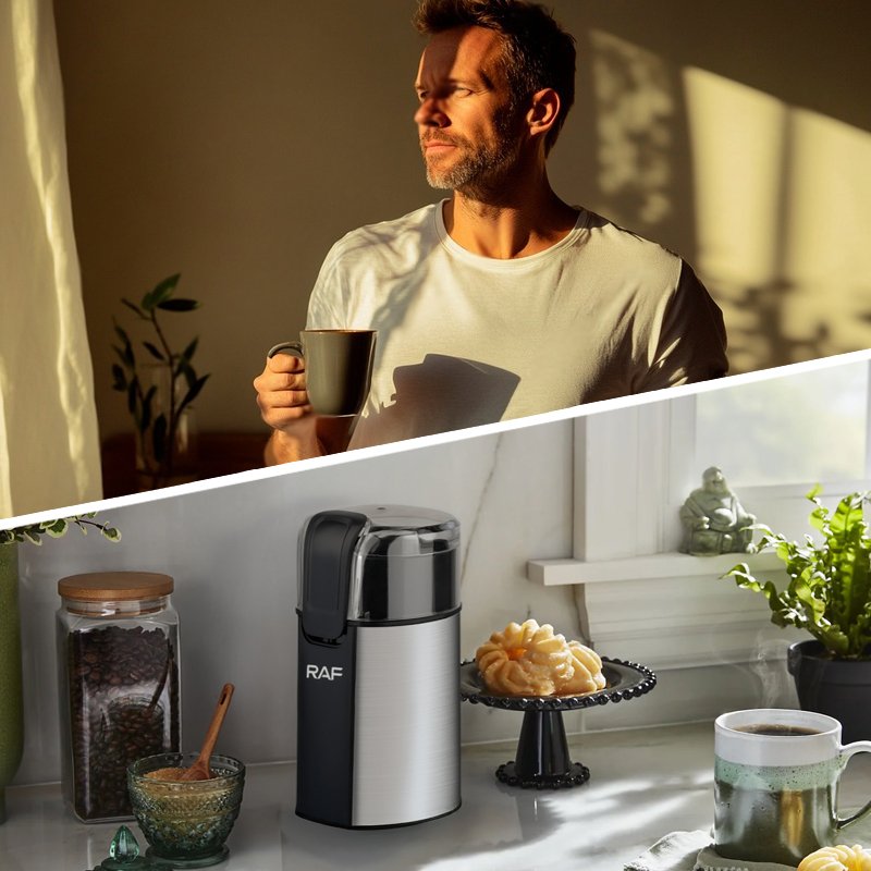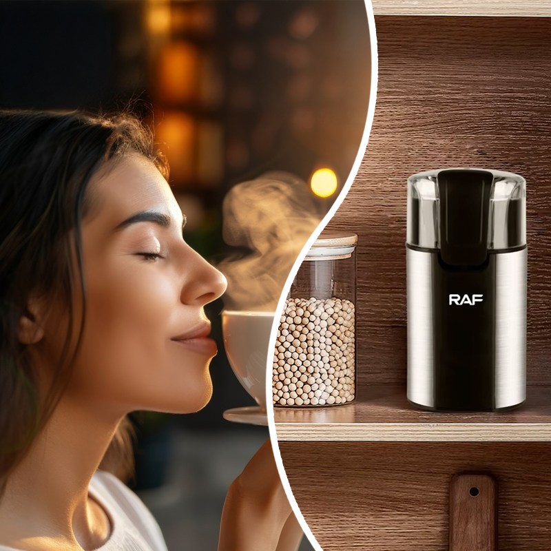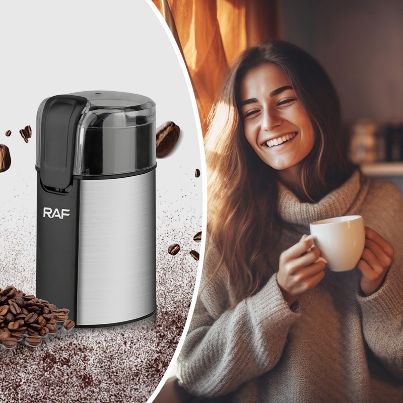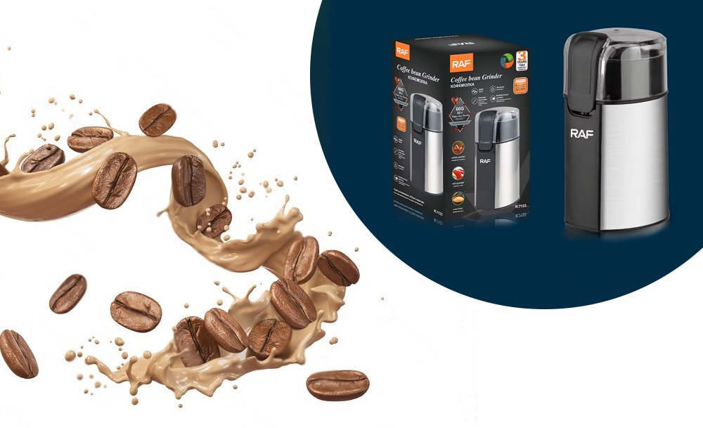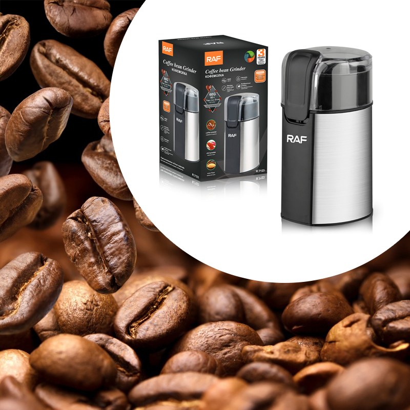 Откройте для себя удовольствие от свежемолотого кофе с кофемолкой RAF R-7123. Благодаря нержавеющей стали и прозрачной крышке вы сможете наблюдать за процессом помола и наслаждаться ароматом каждого зернышка. Компактный и стильный дизайн делает кофемолку идеальным дополнением вашей кухни.