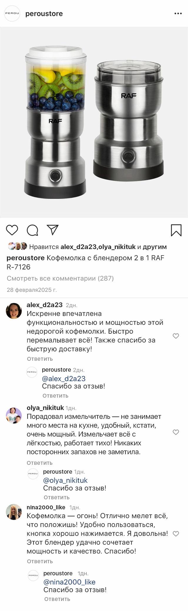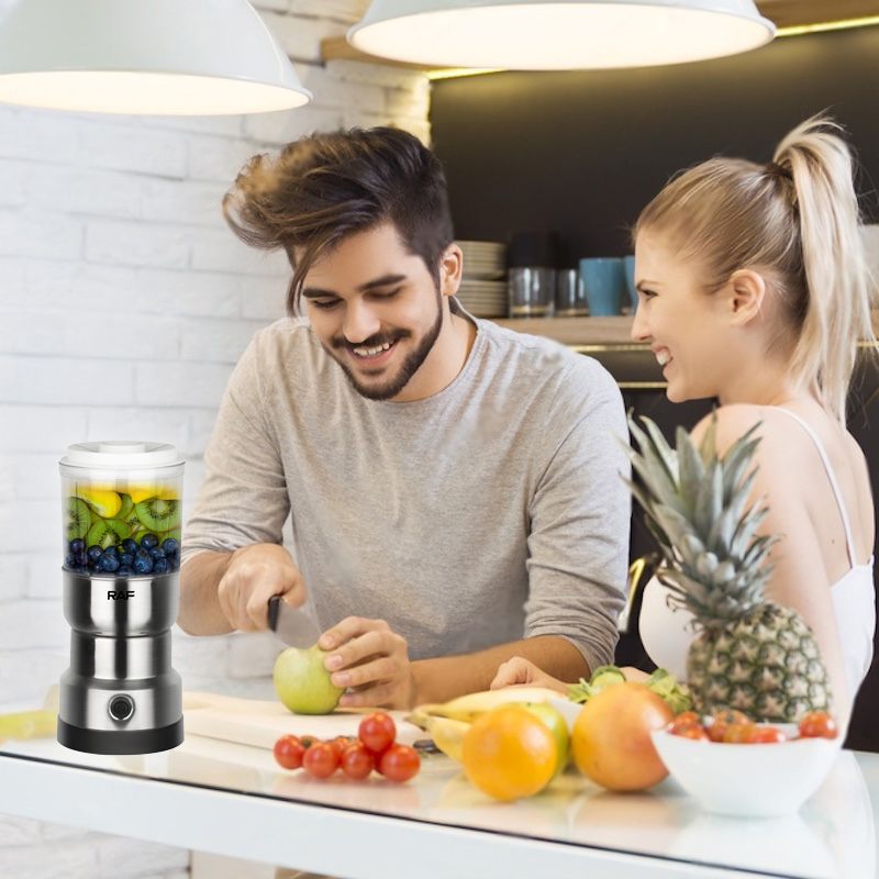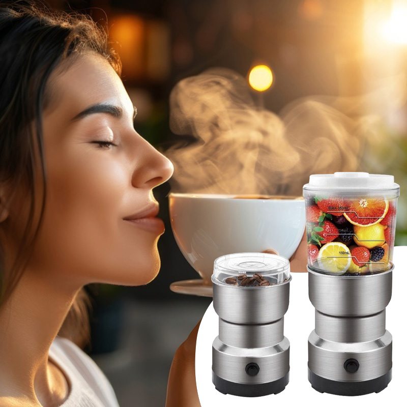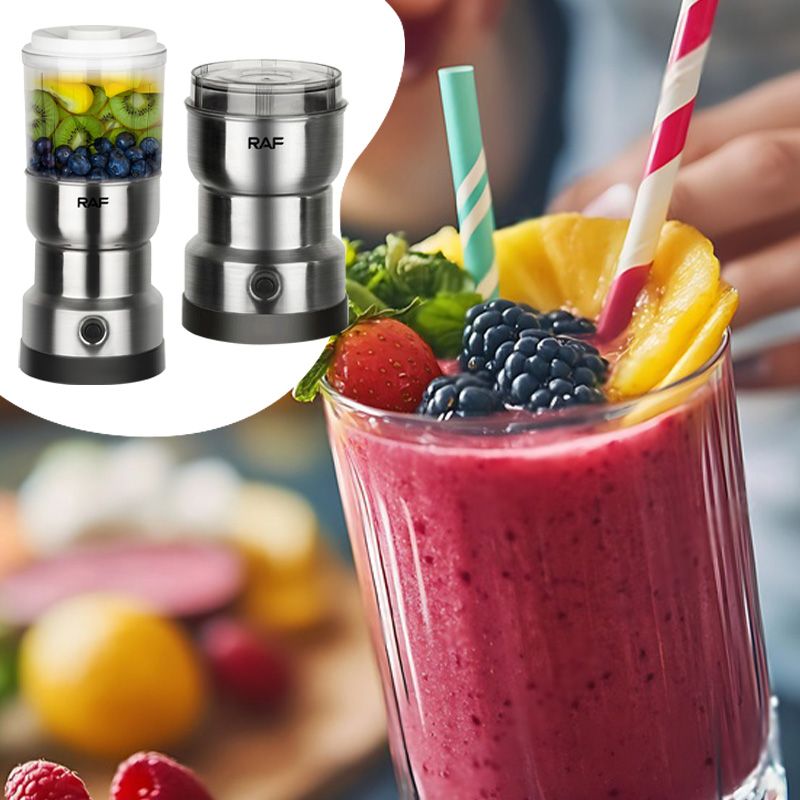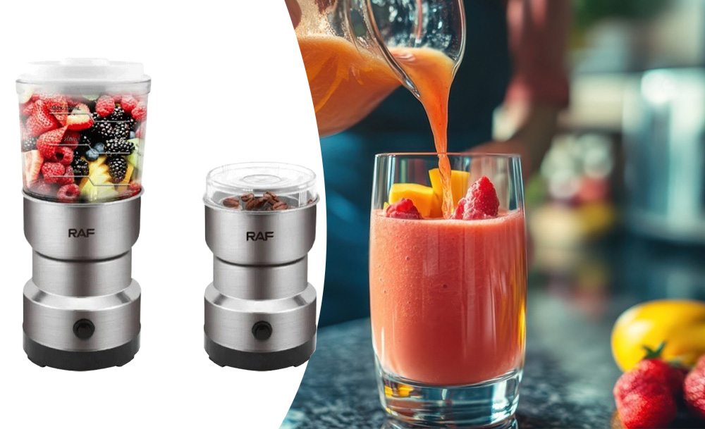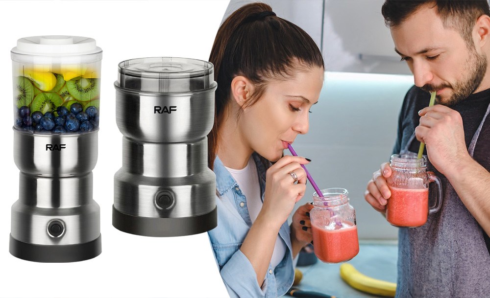 Кофемолка с блендером 2 в 1 RAF R-7126 — стильное и удобное решение для вашей кухни. Мощный мотор 300 Вт легко справляется с помолом кофе, орехов и специй, а прочная чаша из нержавеющей стали прослужит долго и легко очищается.