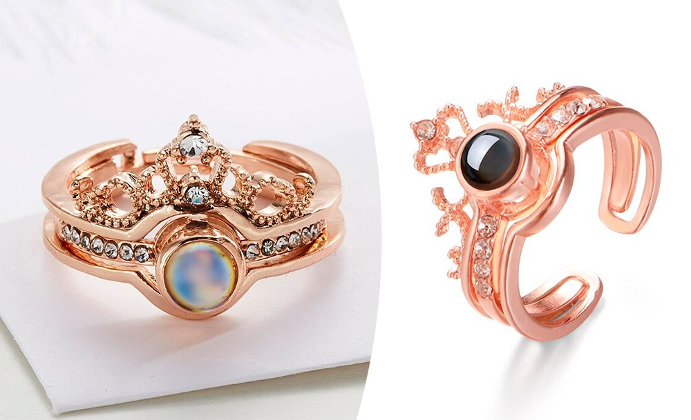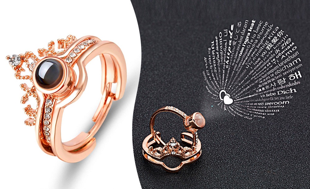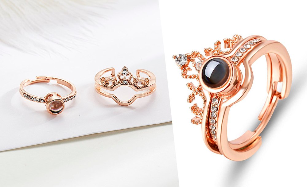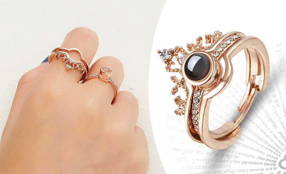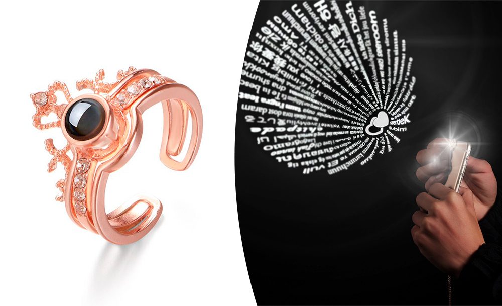 Кольцо с проекцией 2 в 1 – это оригинальный подарок, который можно носить как вместе, так и раздельно. Уникальная особенность этого кольца в надписи «Я Люблю Тебя», которая проявляется на разных языках мира, если поместить его в поток света. Регулируемый разъем позволяет носить кольцо на пальце любого размера. Изделие выполнено из медицинского гипоаллергенного титана с прочным трехслойным напылением серебра и розового золота.