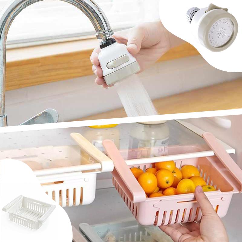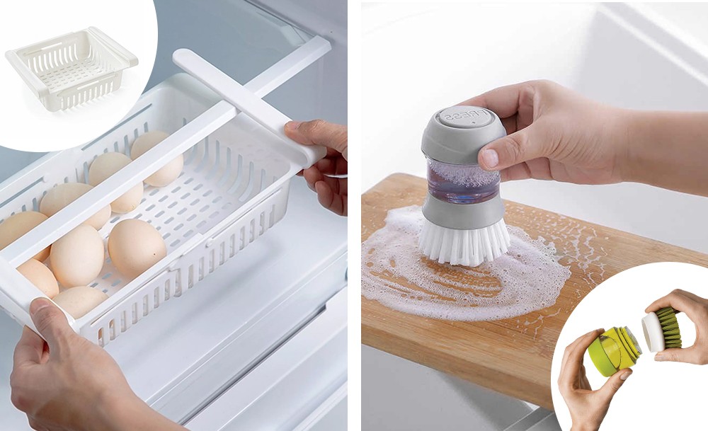 Навести порядок на кухне и организовать пространство помогут подвесной контейнер в холодильник, силиконовые универсальные крышки и ручной запайщик пакетов. Насадка на кран поможет сэкономить расход воды, а щетка с дозатором для мыла сделает мытье посуды более продуктивным. Миксер для сливок и спрей для цитрусовых 3в1 сделают ваши блюда идеальными.