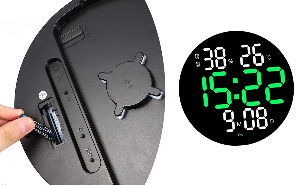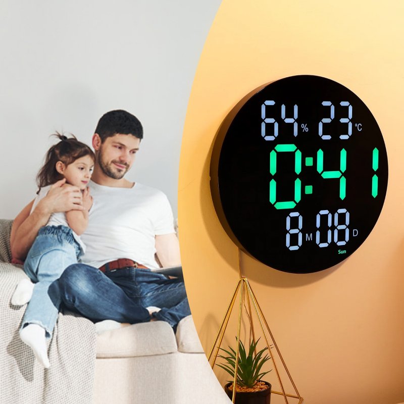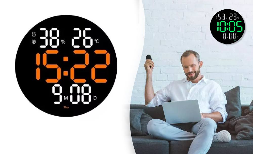 Круглые настенные часы 3813L, выполненные в черном корпусе с яркой подсветкой больших цифр, обеспечивают удобство использования в любом интерьере. Устройство одновременно показывает время, дату, день недели, температуру и влажность воздуха, позволяя всегда быть в курсе ключевой информации.