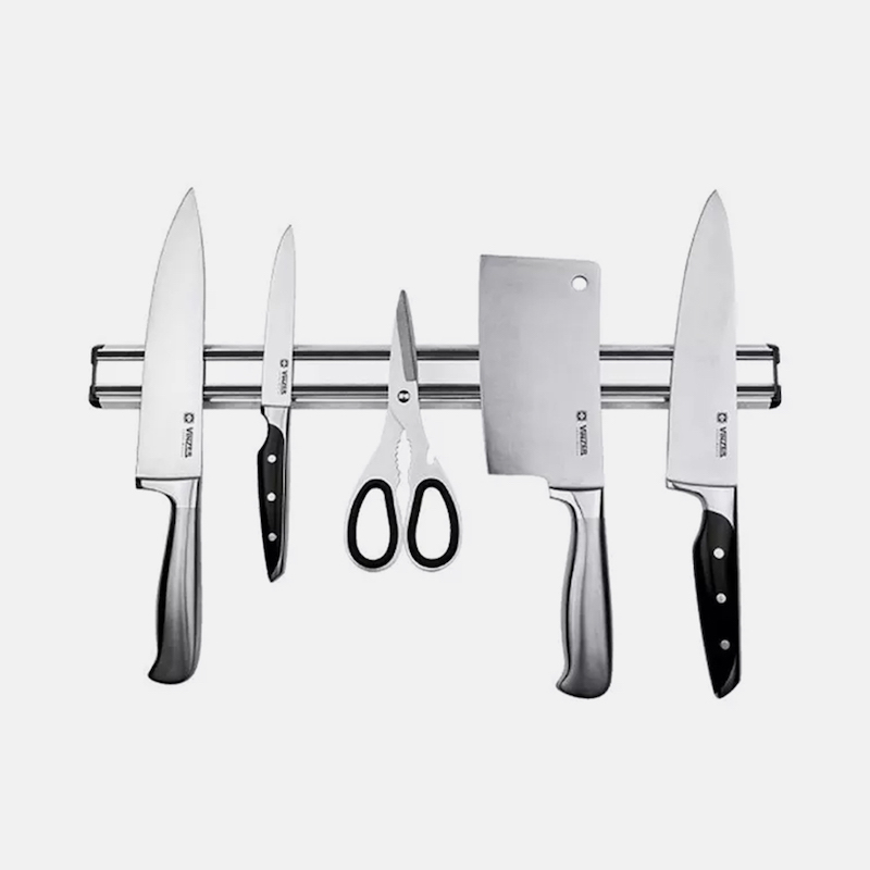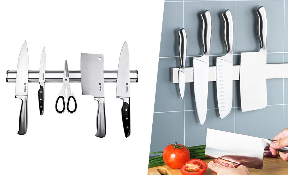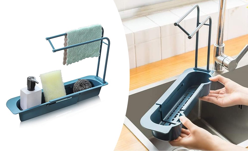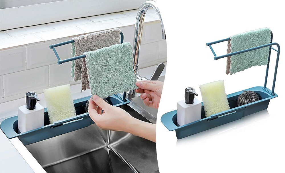 Магнитная рейка из прочной нержавеющей стали надежно удерживает ножи, столовые приборы, и другие кухонные принадлежности. Они всегда будут на виду и под рукой. Органайзер для мочалок с дозатором средства для мытья посуды поможет сохранить чистоту на кухне, и не займет много места.