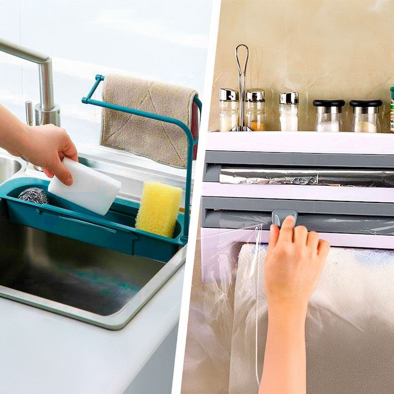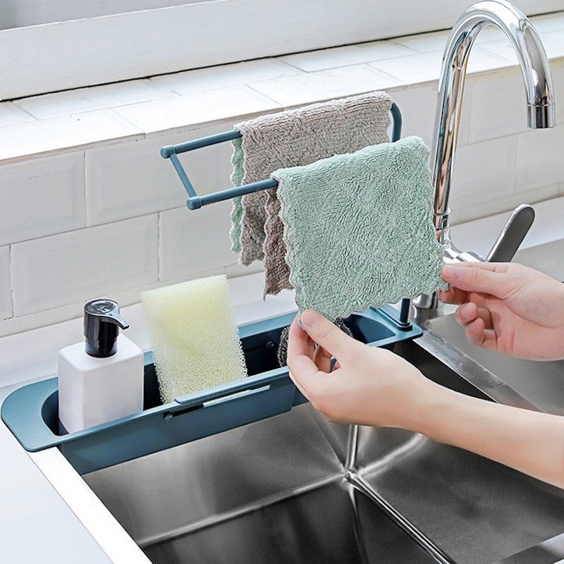 Корзина для раковины позволяет удобно упорядочить губки и тряпки, а также сливать жидкие пищевые отходы, предотвращая засорение кухонных труб.