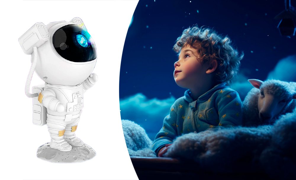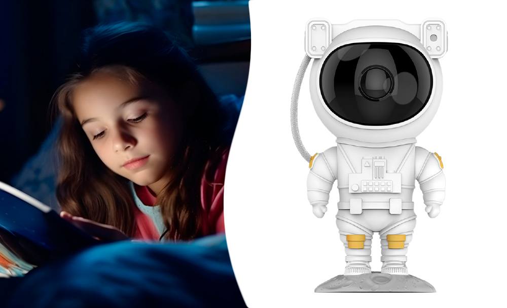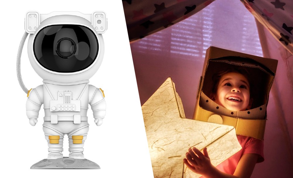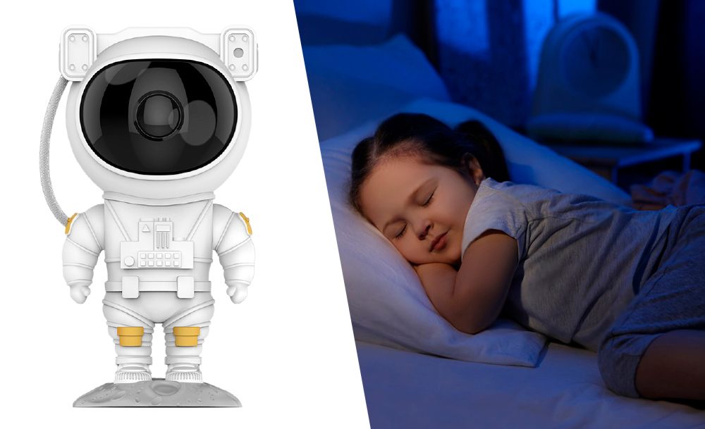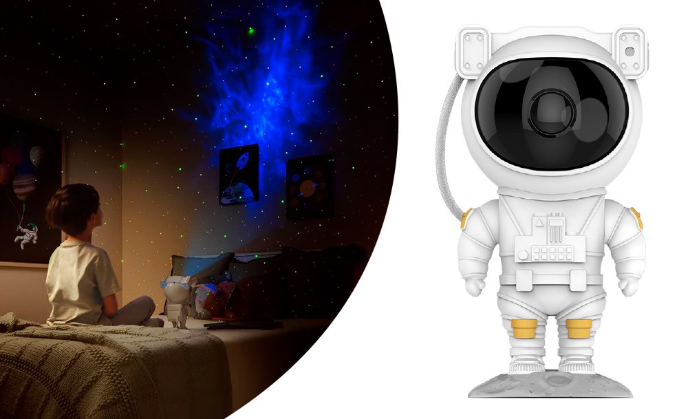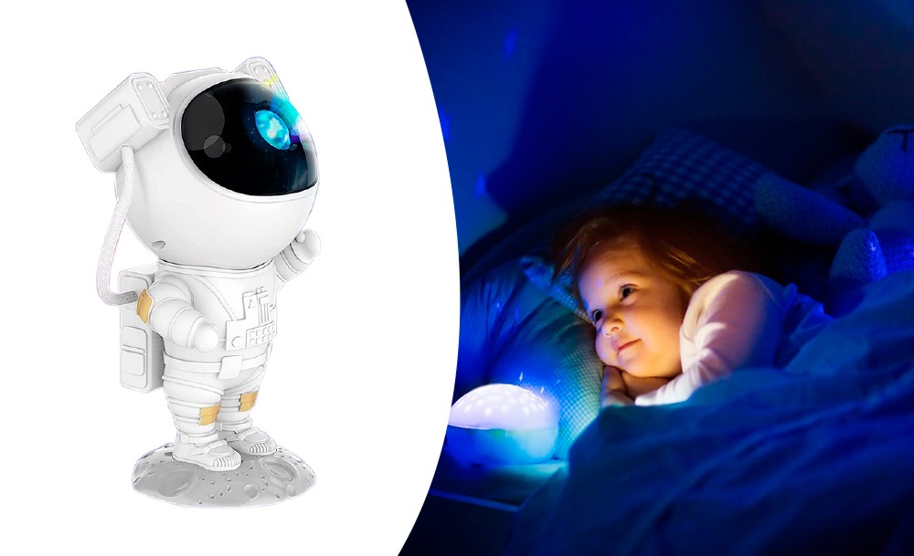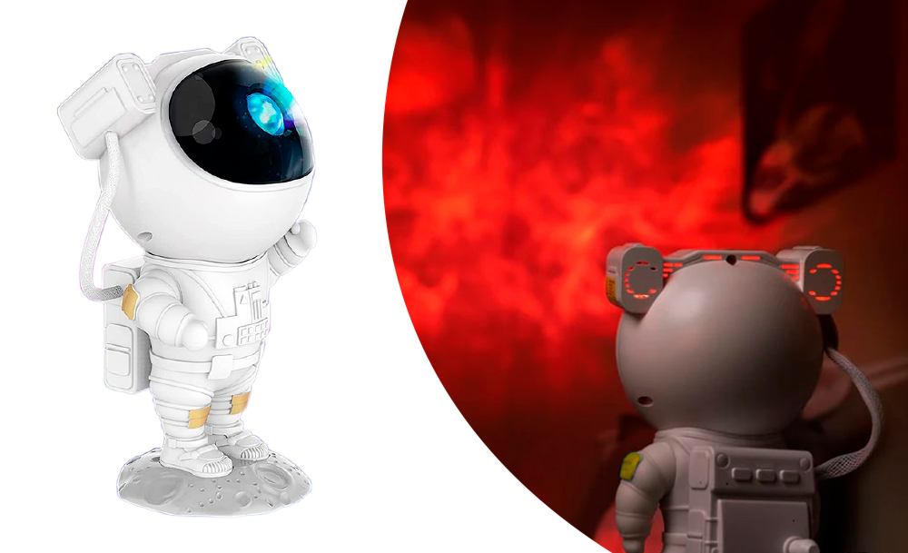 Лазерный проектор галактики Астронавт на месяц станет отличным ночником для юных покорителей космоса, и одной из любимых игрушек! 8 ярких разноцветных изображений галактики будут оживлять и украшать не только детскую, но и вечеринку, семейный просмотр кино или игровую комнату.